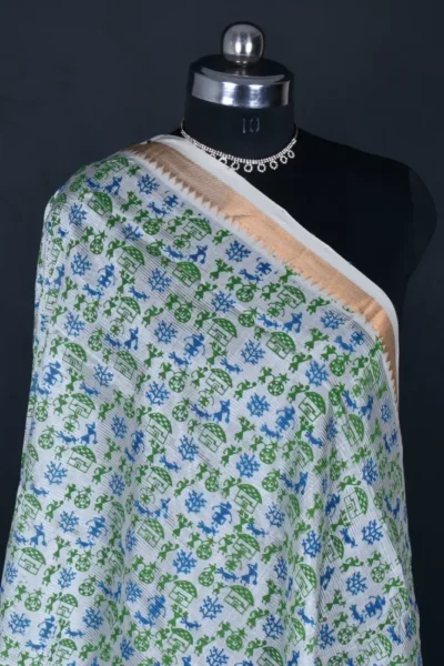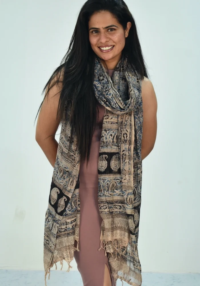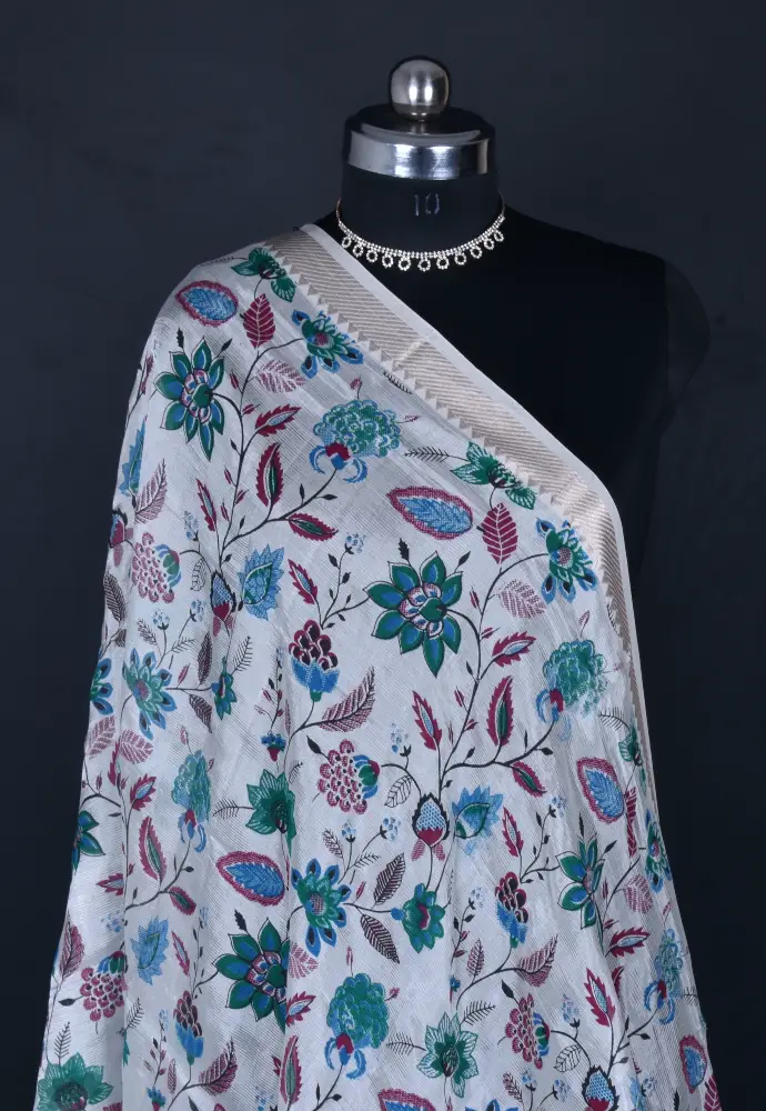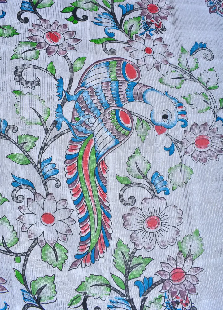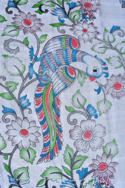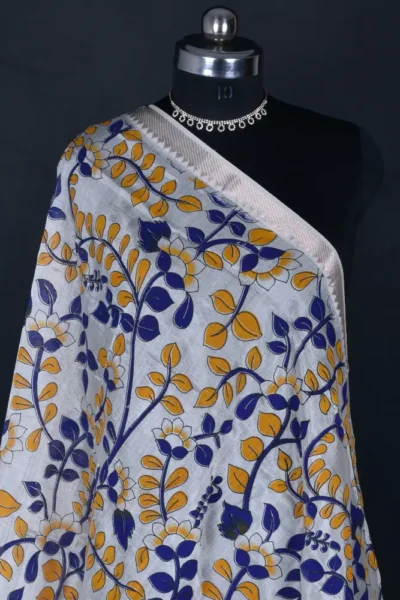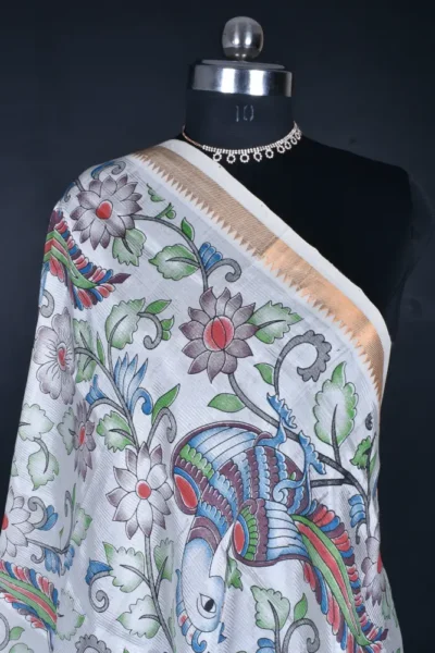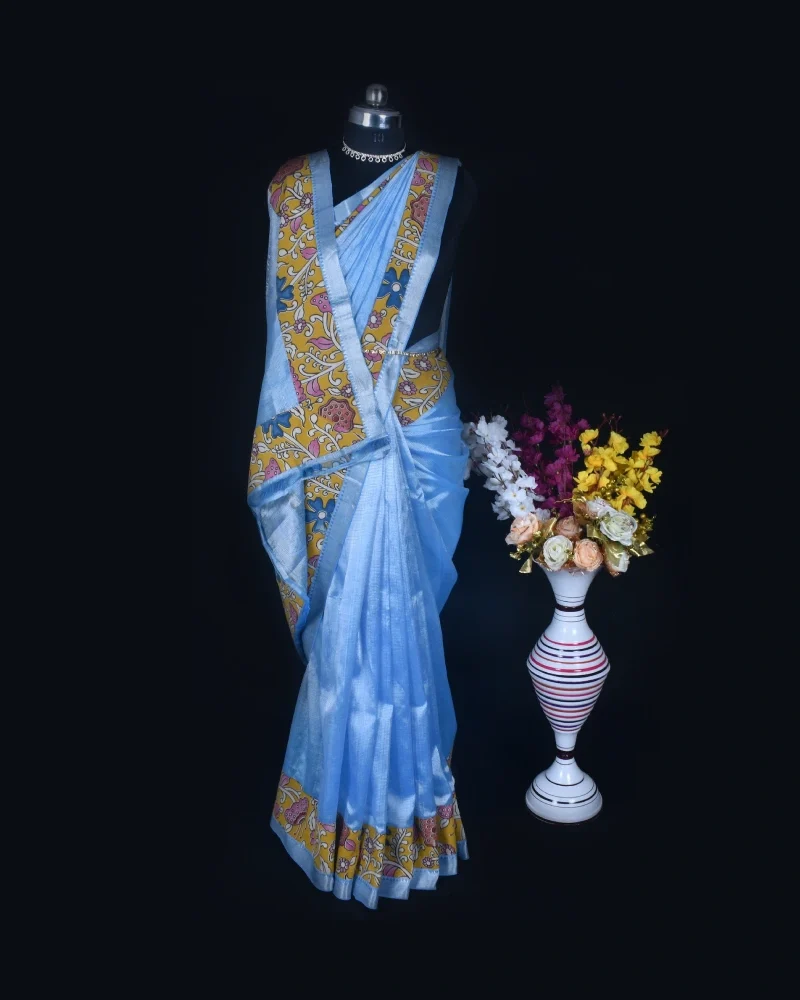 Mangalagiri Cotton Nizam Border Kalamkari Handblock Print Saree