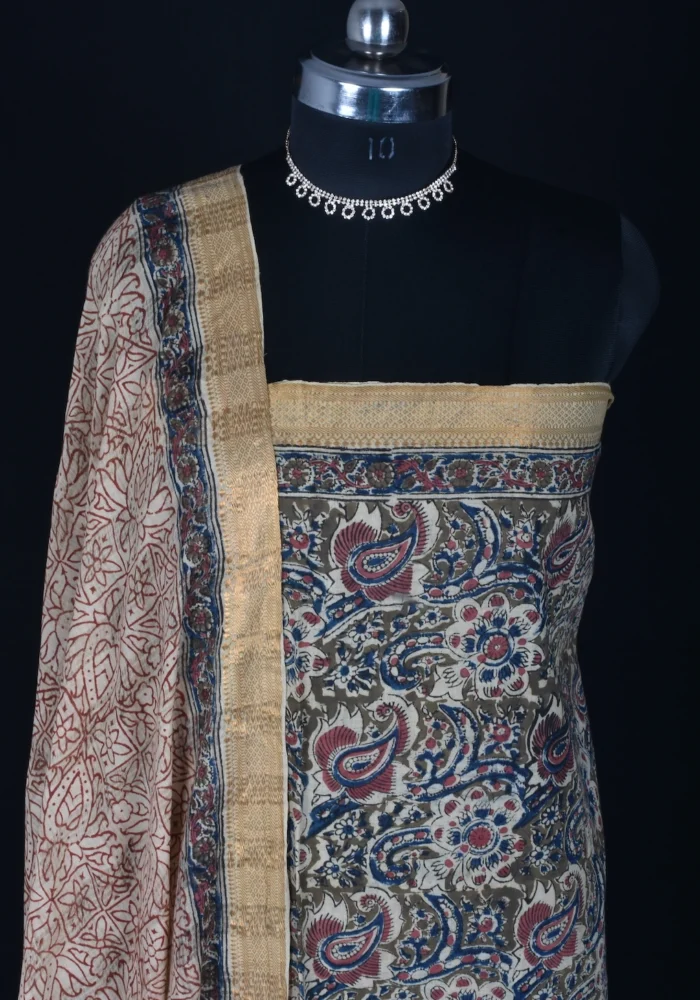 Mangalagiri Cotton Nizam Border Azrak Print Dress Suit