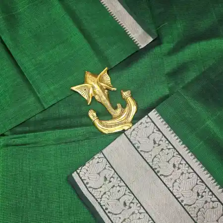 Classic, timeless, and effortlessly graceful — this Mangalagiri Cotton-Pure Silk Blend Plain saree combines the comfort of fine cotton with the natural sheen of pure silk. Handwoven by skilled artisans, the fabric is lightweight, breathable, and carries a soft luster, making it perfect for both everyday elegance and special occasions.