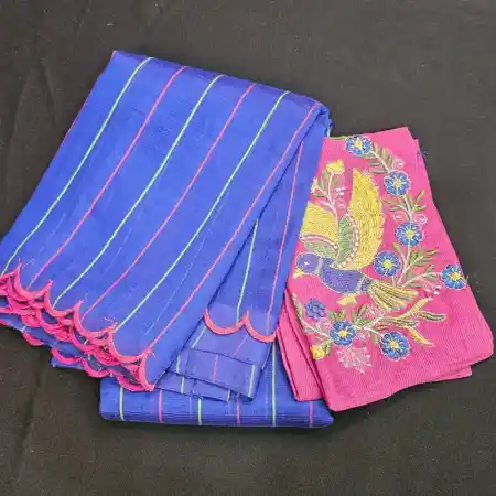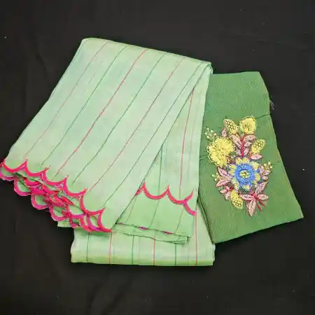 Blending everyday comfort with elegant tradition, this Mangalagiri Cotton Silk Blend 50k Saree is handwoven with a perfect mix of fine cotton and soft silk yarns. The result is a fabric that is lightweight, breathable, and carries a gentle, natural sheen — ideal for long hours of graceful draping.