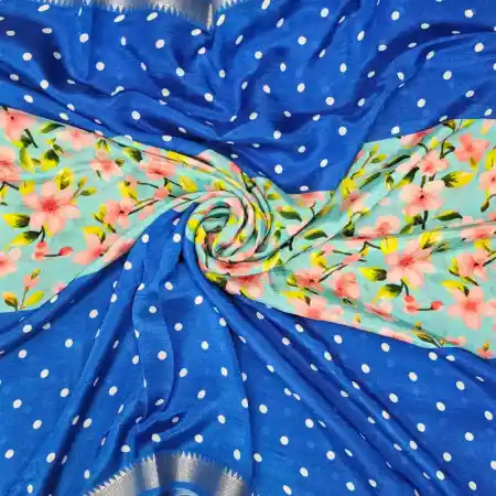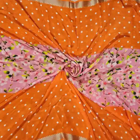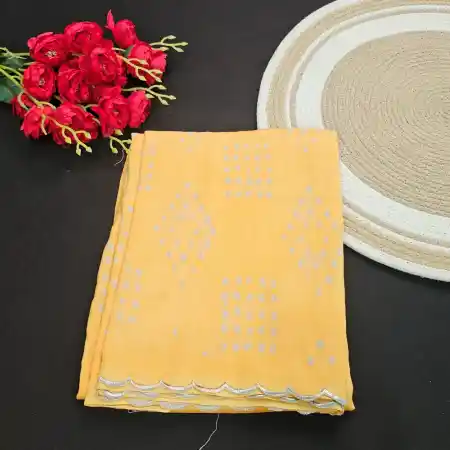 Framed with a classic 50k zari border, this saree offers a versatile style, making it perfect for festive wear, office events, or casual celebrations.