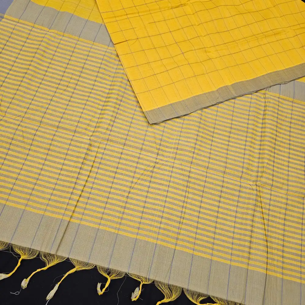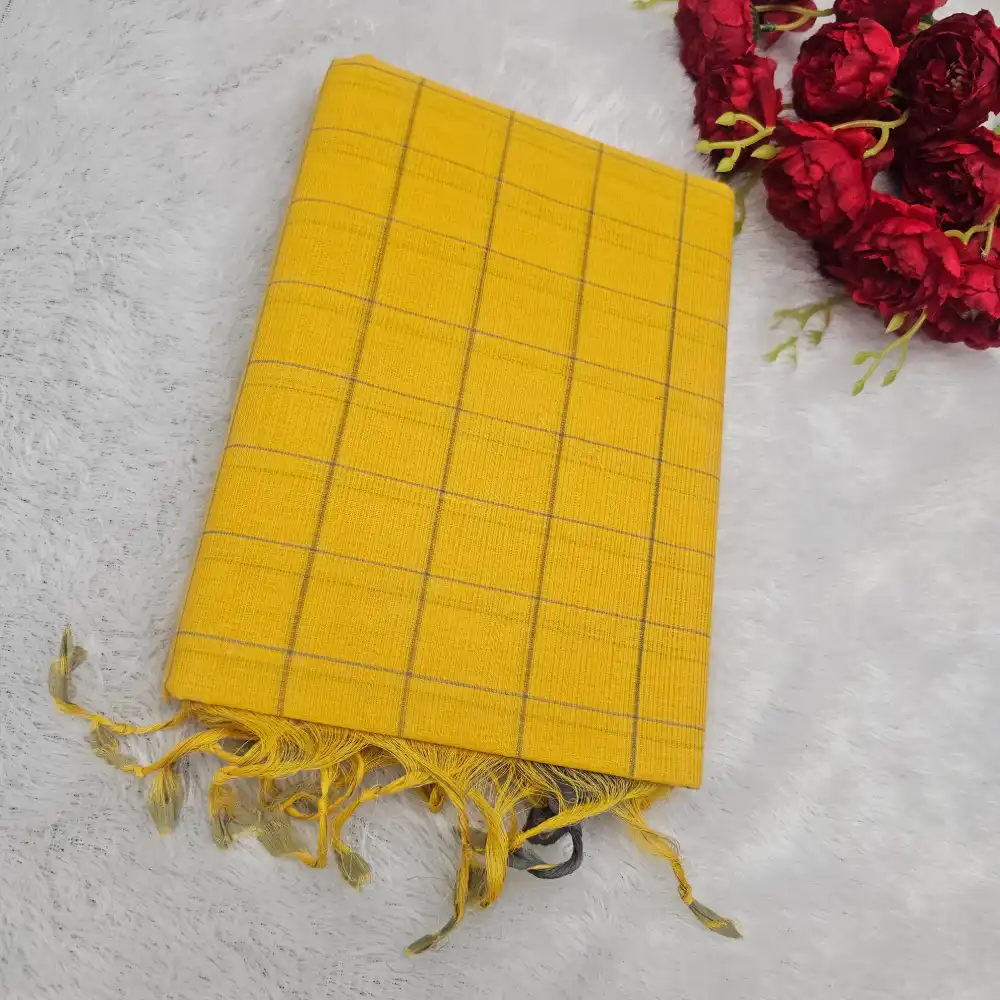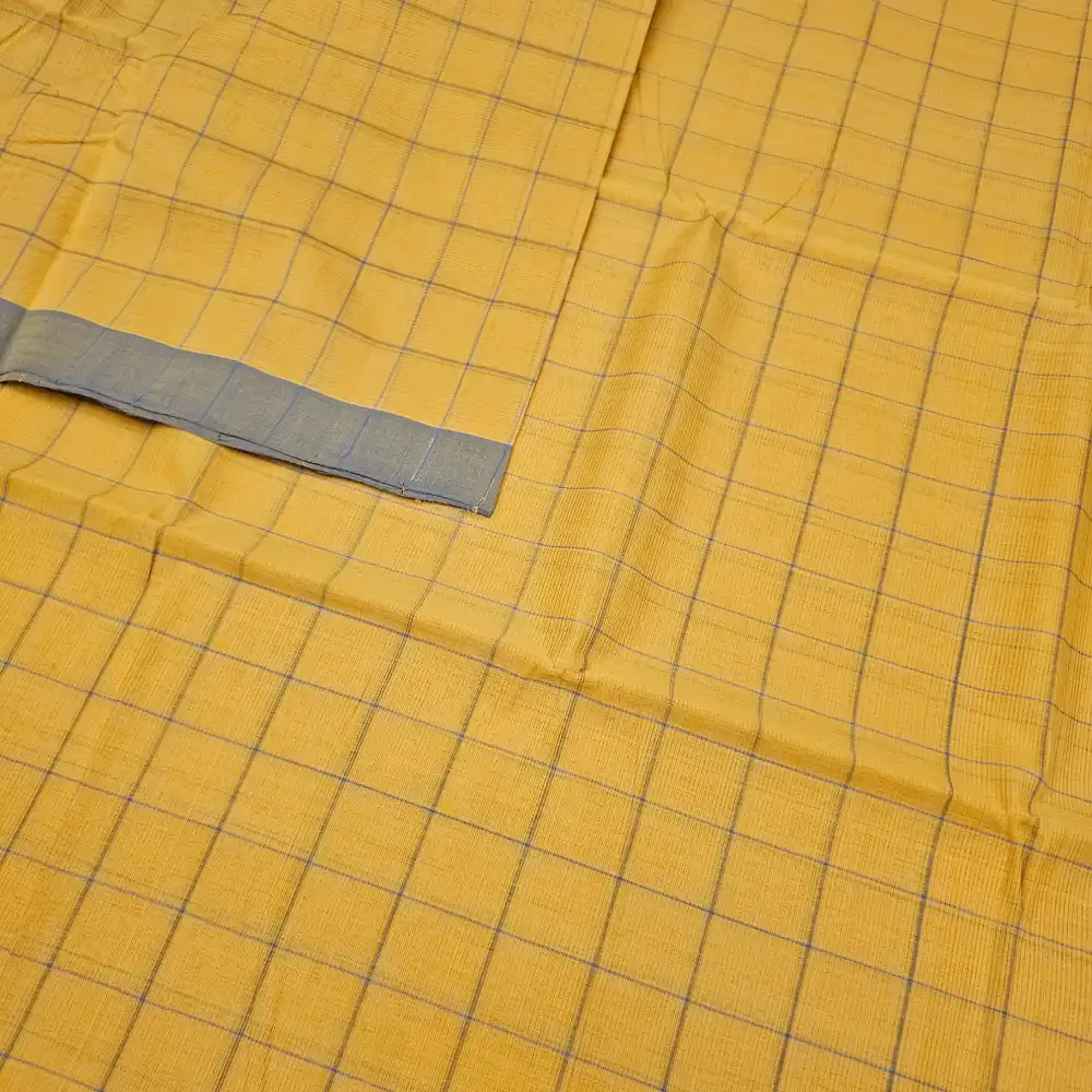 Yellow Mangalagiri Handloom Cotton Checks Saree