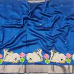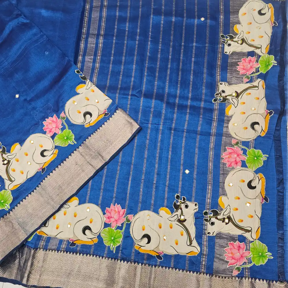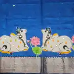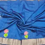Blue mangalagiri Handloom silk Cotton blend 150k border applique work saree