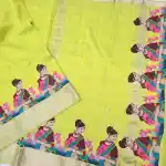 Experience timeless elegance with this exquisite ParrotGreen mangalagiri Handloom silk Cotton blend 150k border applique work saree, Crafted with traditional Mangalagiri weaving techniques, this saree features a graceful applique design that adds charm and sophistication. Perfect for festive occasions, cultural gatherings, and elegant celebrations, it beautifully blends classic craftsmanship with contemporary style.