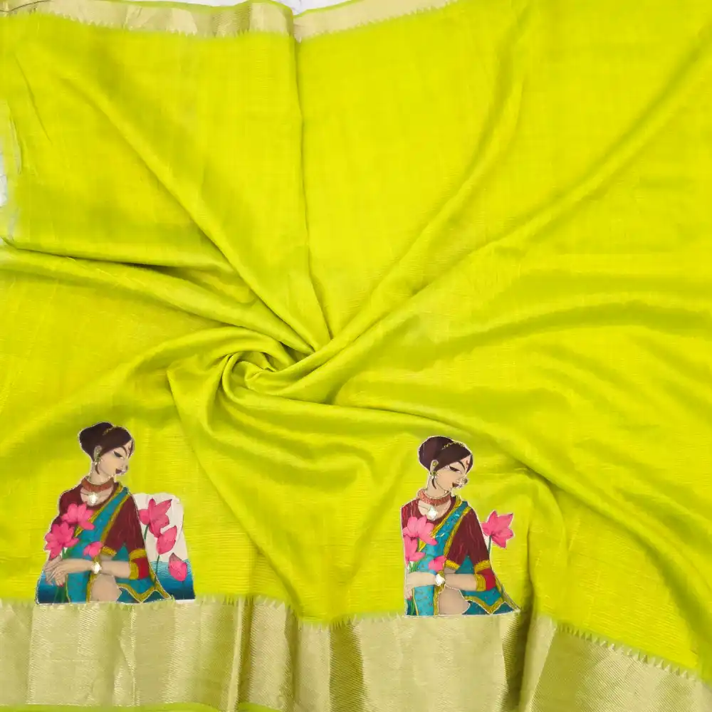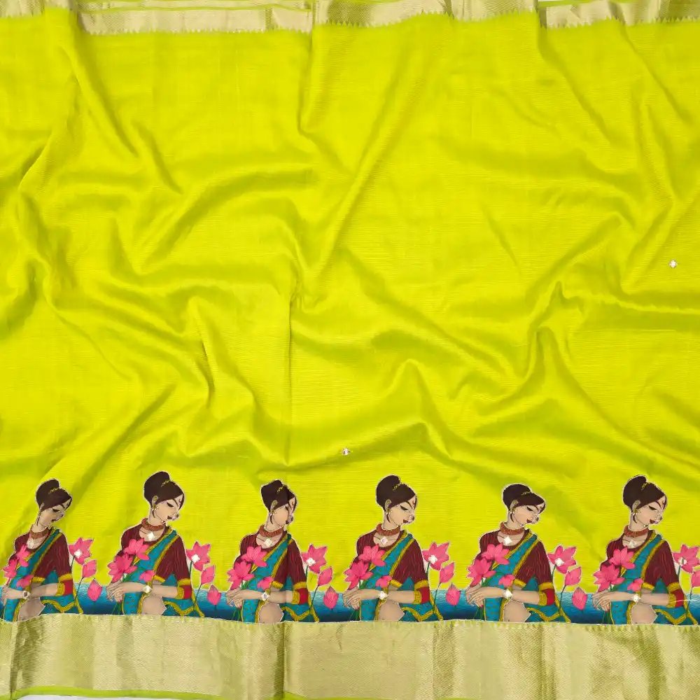 ParrotGreen mangalagiri Handloom silk Cotton blend 150k border applique work saree