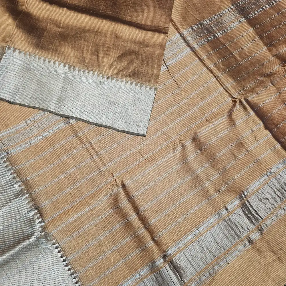 Thick Baige Mangalagiri Handloom Silk Cotton Blend 150k Border Saree