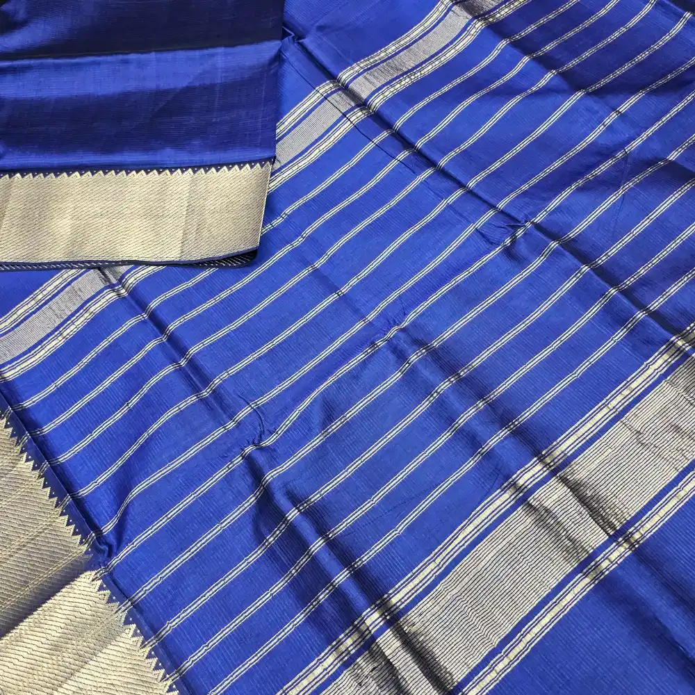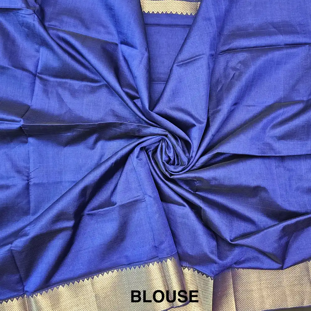 Royal Blue Mangalagiri Handloom Silk Cotton Blend 150k Border Saree
