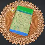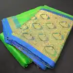- Pallu: Contrast Blue Color Pallu With Gold Zari Stripes