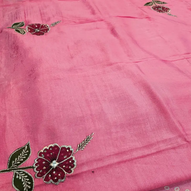 The saree is paired with a matching blouse piece embellished with intricate machine embroidery work, adding extra sophistication to your look.