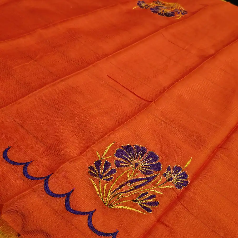 - Fabric: Orange Mangalagiri Cotton Silk Blend