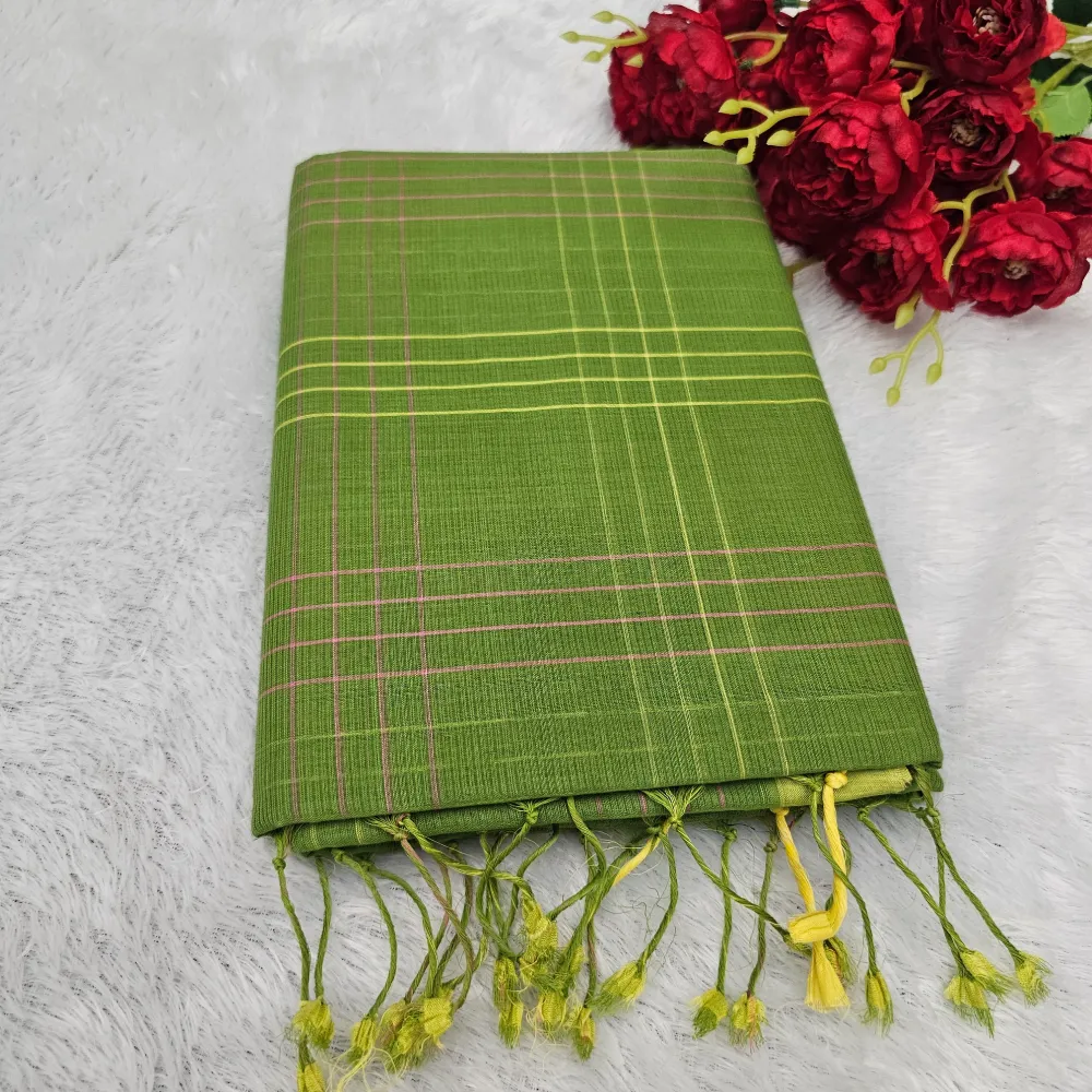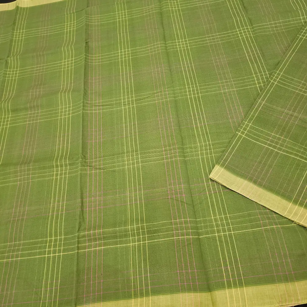 Olive Green Mangalagiri Handloom Cotton Double Checks Saree