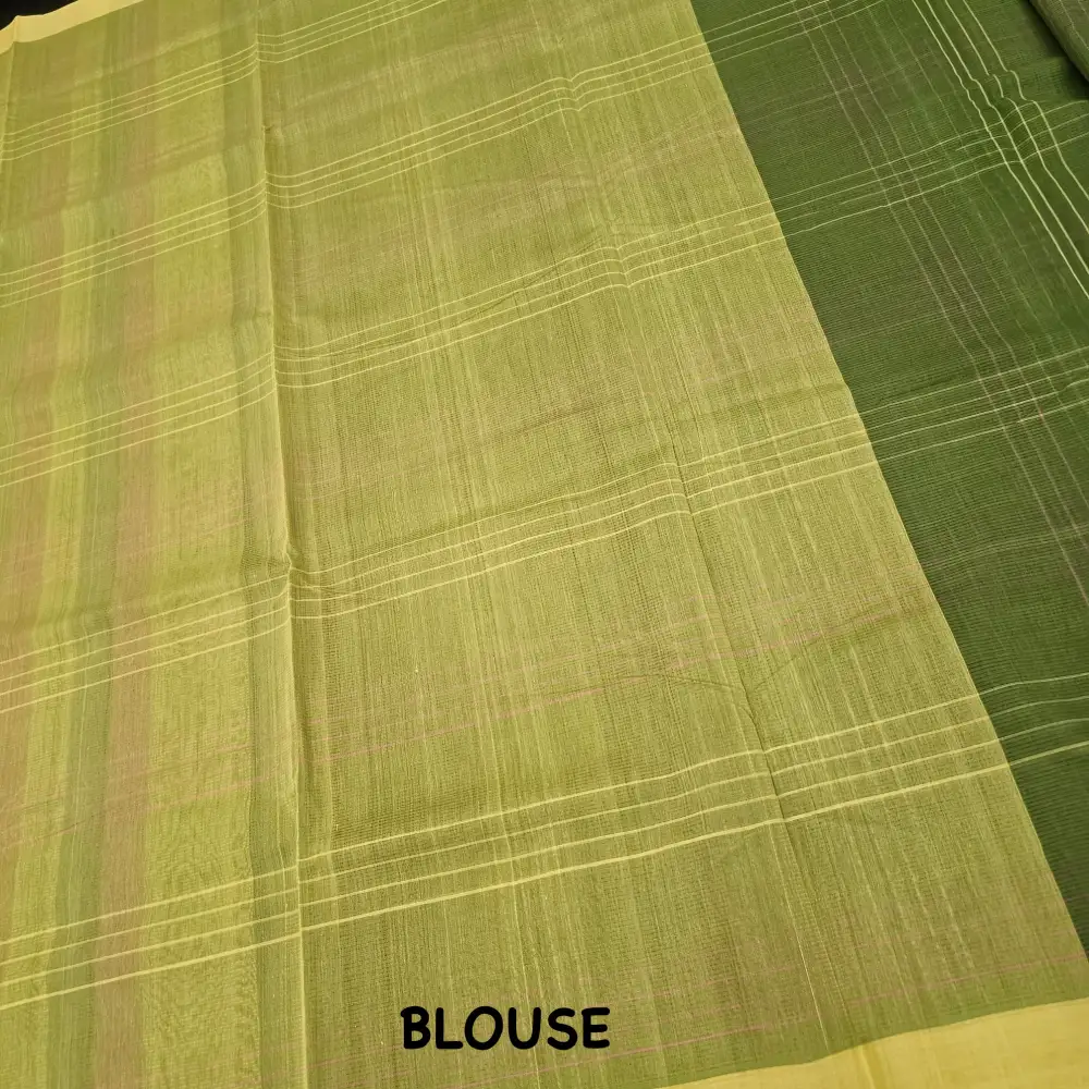 Step into timeless elegance with this Olive Green Mangalagiri Handloom Cotton Double Checks Saree, a true reflection of traditional South Indian artistry. Handwoven by skilled weavers from Mangalagiri, Andhra Pradesh, this saree features a distinctive Lemon Yellow and Pink double-checks pattern that adds a refined charm to its lightweight and breathable cotton fabric. Perfect for both everyday grace and festive sophistication, it effortlessly blends comfort, tradition, and style.
