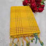 Be the first to review “Orange Yellow Mangalagiri Handloom Cotton Double Checks Saree”