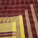 Cherry Colour With Yellow Mangalagiri Handloom Cotton Double Checks Saree