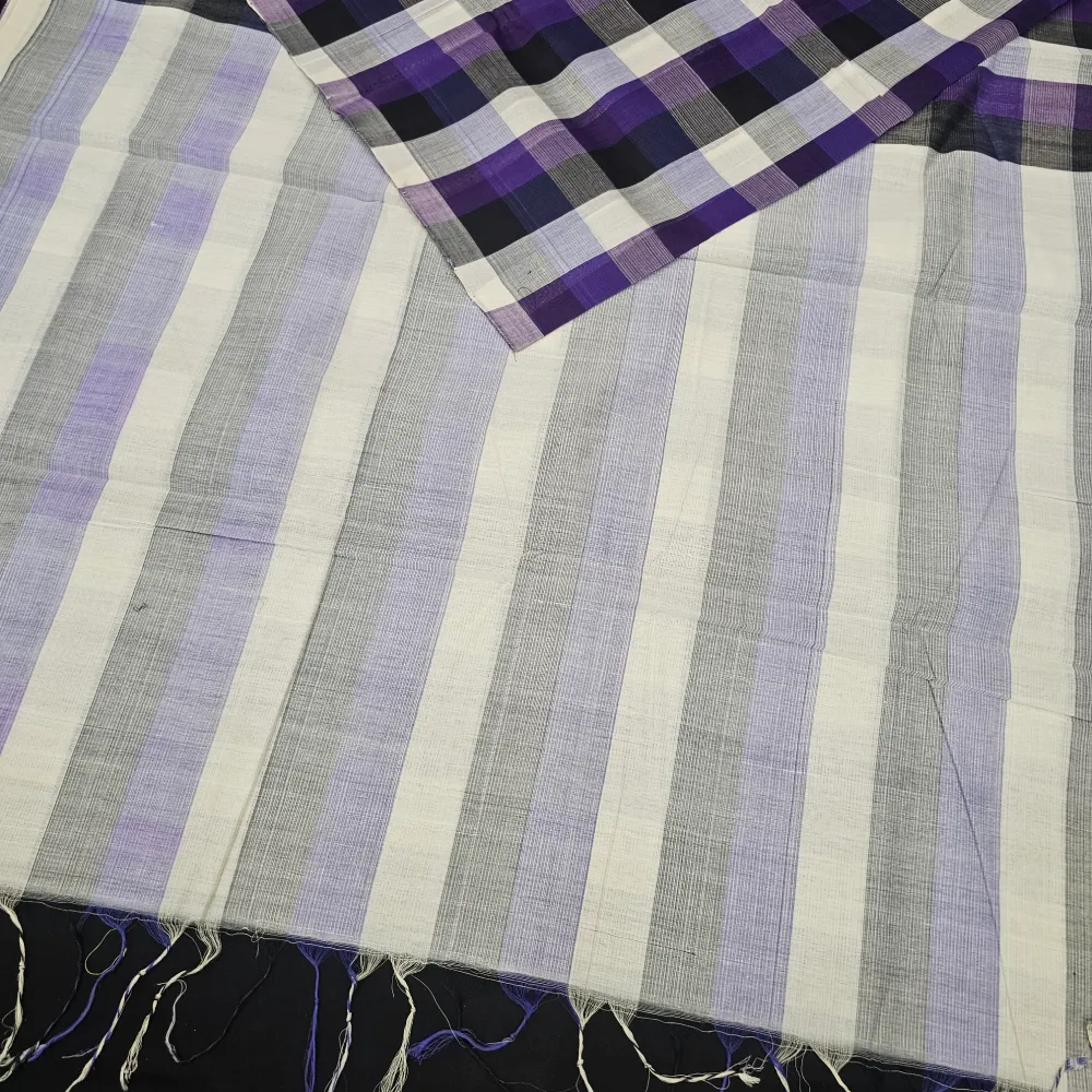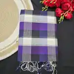 Experience timeless elegance with this Violet With White Mangalagiri Handloom Cotton Big Checks Saree, a perfect blend of simplicity and tradition. Handwoven by skilled artisans of Mangalagiri, this saree features delicate Big checks across the body, offering a graceful and classic appeal. Made from pure cotton, it ensures exceptional comfort, breathability, and ease of drape — making it an ideal choice for everyday wear, office attire, or casual gatherings.