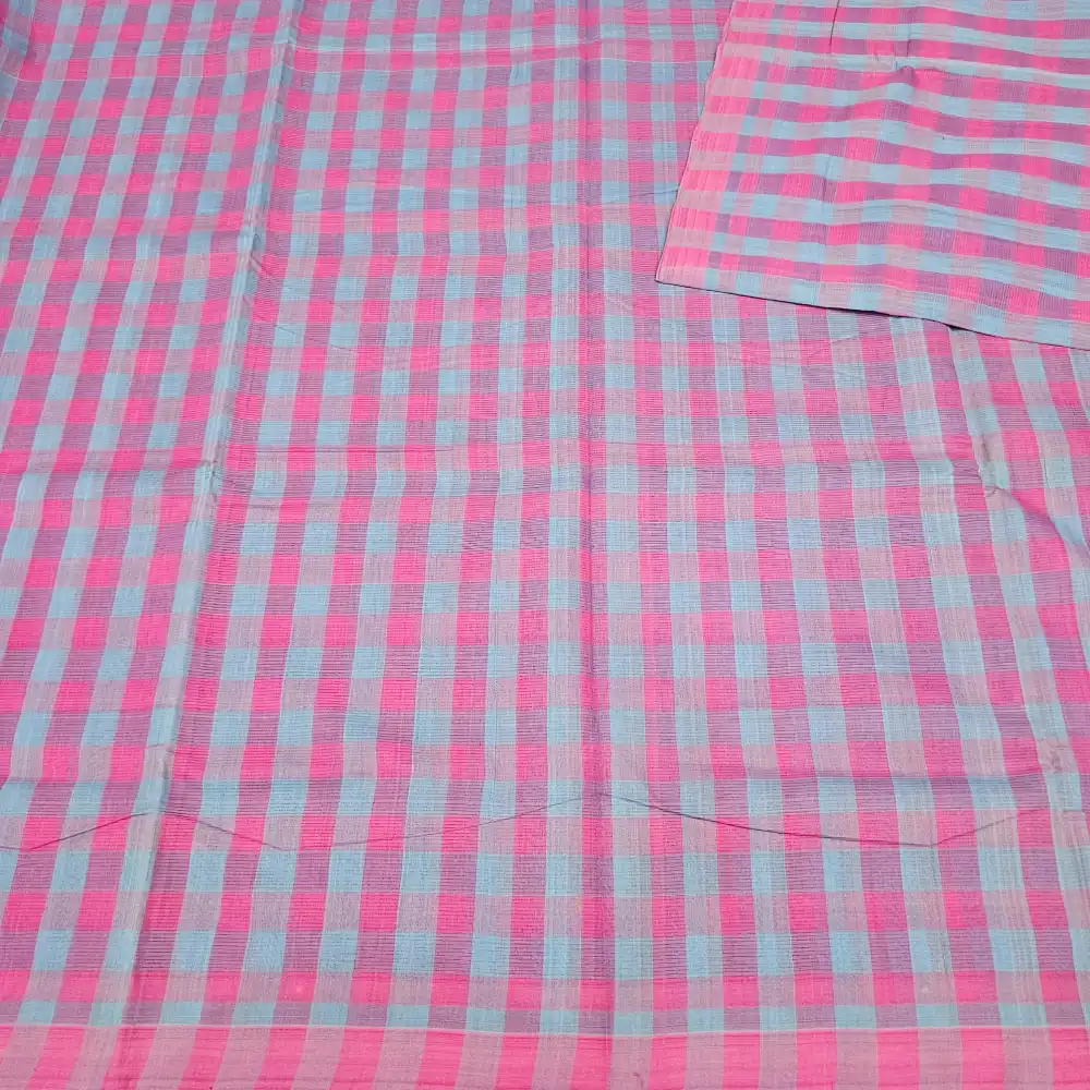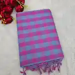 Experience timeless elegance with this Purple With Light Navy Blue Mangalagiri Handloom Cotton Small Checks Saree, a perfect blend of simplicity and tradition. Handwoven by skilled artisans of Mangalagiri, this saree features delicate small checks across the body, offering a graceful and classic appeal. Made from pure cotton, it ensures exceptional comfort, breathability, and ease of drape — making it an ideal choice for everyday wear, office attire, or casual gatherings.