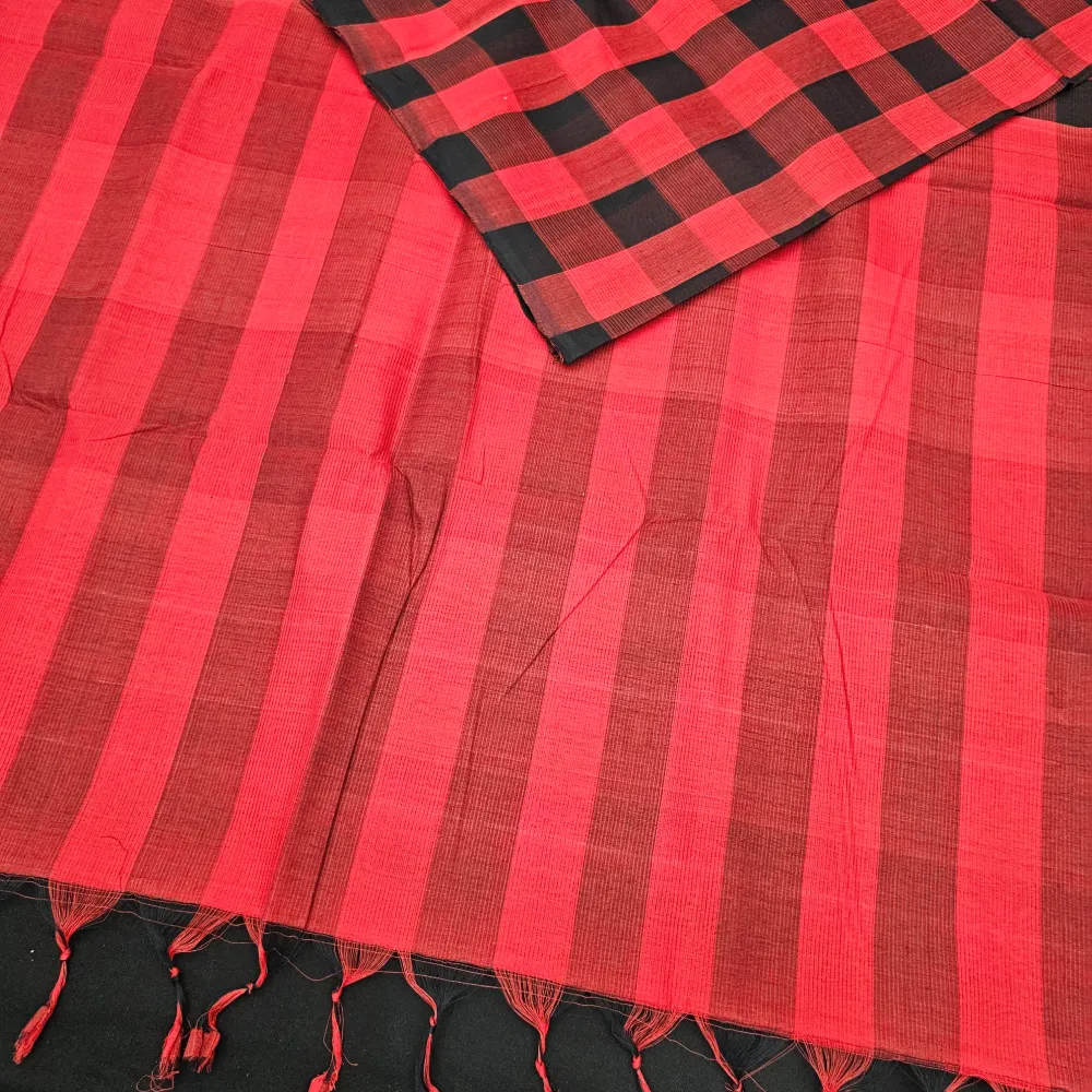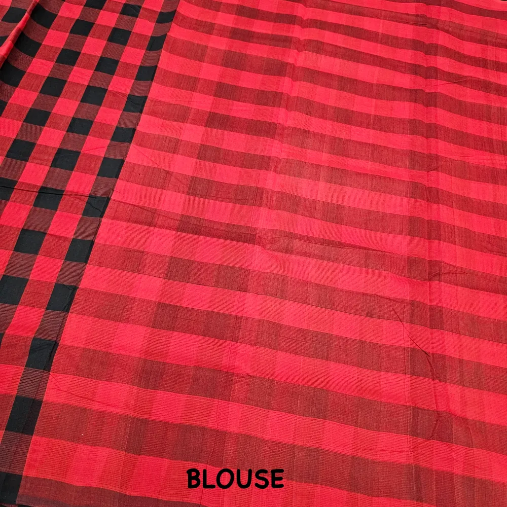 Experience timeless elegance with this Red With Black Mangalagiri Handloom Cotton Big Checks Saree, a perfect blend of simplicity and tradition. Handwoven by skilled artisans of Mangalagiri, this saree features delicate Big checks across the body, offering a graceful and classic appeal. Made from pure cotton, it ensures exceptional comfort, breathability, and ease of drape — making it an ideal choice for everyday wear, office attire, or casual gatherings.