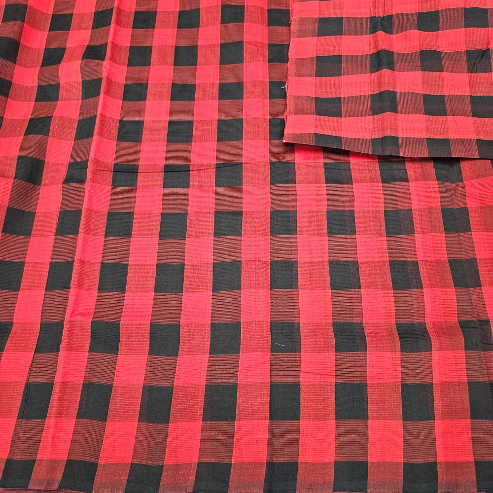 Red With Black Mangalagiri Handloom Cotton Big Checks Saree
