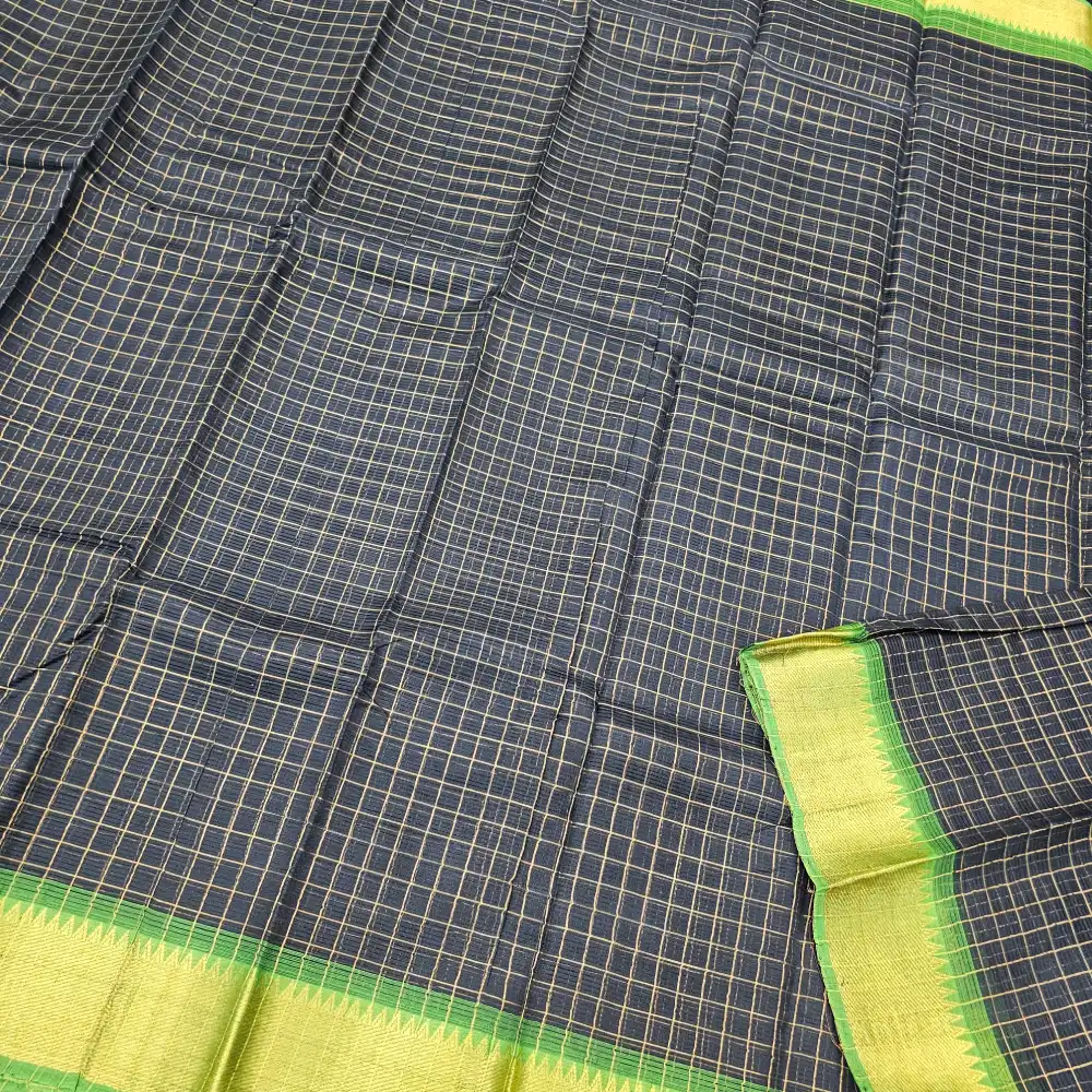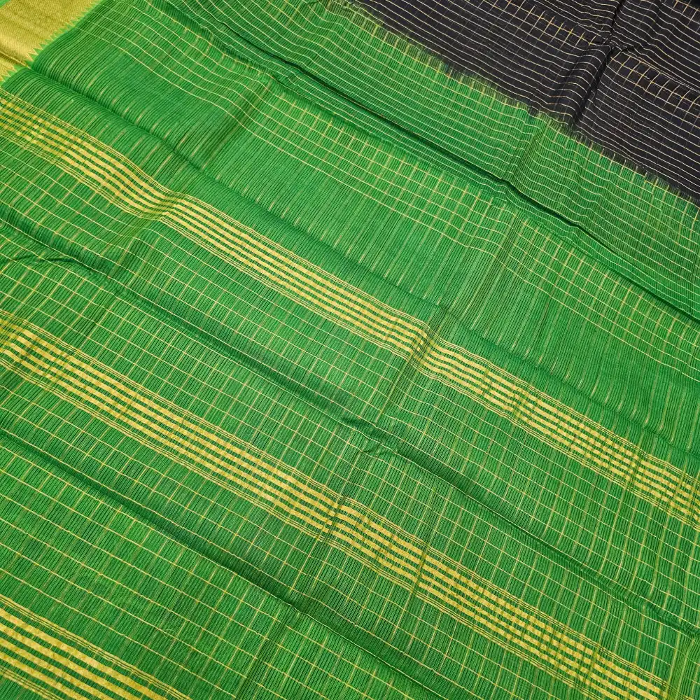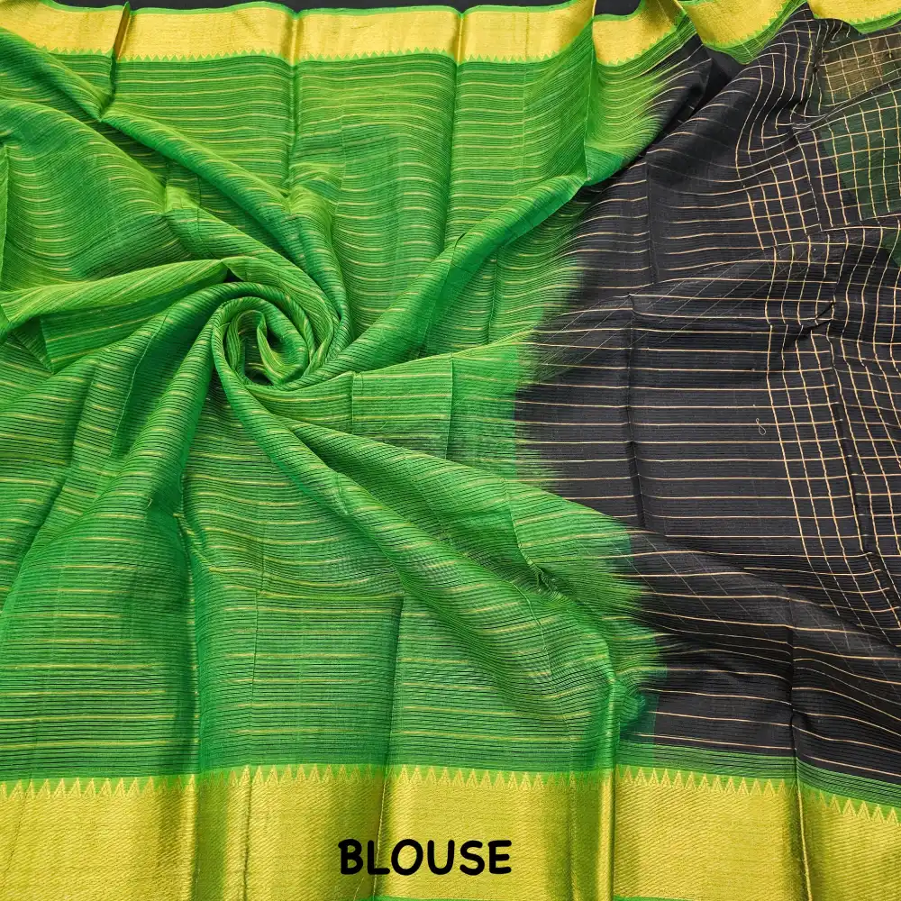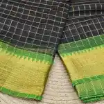 Black With Green Mangalagiri Handloom Pure Silk Cotton Blend 100K Zari Checks Saree