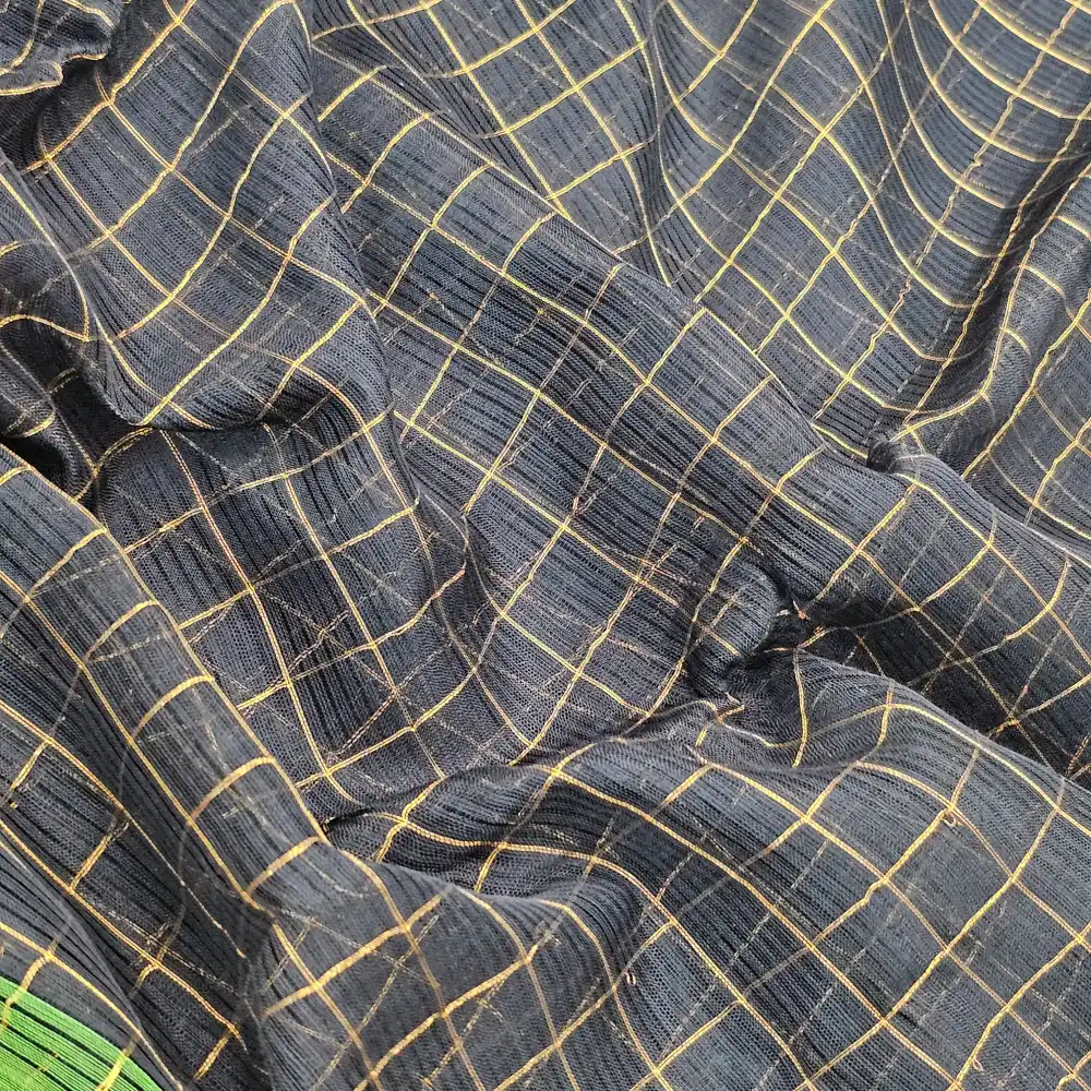 Enhance your ethnic style with this Black and Green Mangalagiri Handloom Pure Silk Cotton Blend Checks Saree featuring a graceful 100K zari border. Expertly handwoven by skilled artisans, this saree beautifully combines the lustrous texture of silk with the soft comfort of cotton. The traditional checked pattern adds timeless charm, while the rich zari border brings a touch of sophistication—perfect for festive occasions, traditional ceremonies, and cultural gatherings.