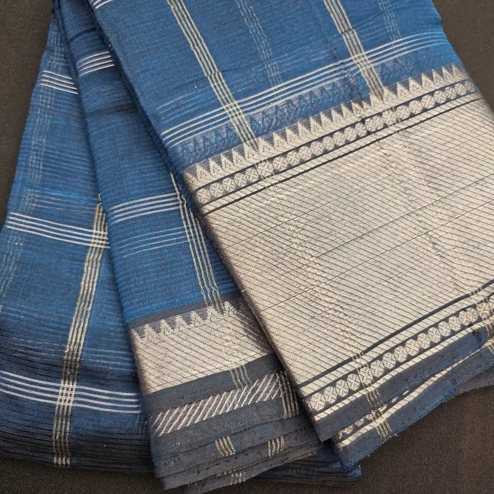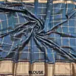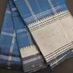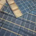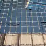 Steel Blue Mangalagiri Handloom Pure Silk Cotton Blend 150k zari Checks Saree