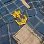 Enhance your ethnic style with this Steel Blue Mangalagiri Handloom Pure Silk Cotton Blend Checks Saree featuring a graceful 150K Gold zari border. Expertly handwoven by skilled artisans, this saree beautifully combines the lustrous texture of silk with the soft comfort of cotton. The traditional checked pattern adds timeless charm, while the rich zari border brings a touch of sophistication—perfect for festive occasions, traditional ceremonies, and cultural gatherings.