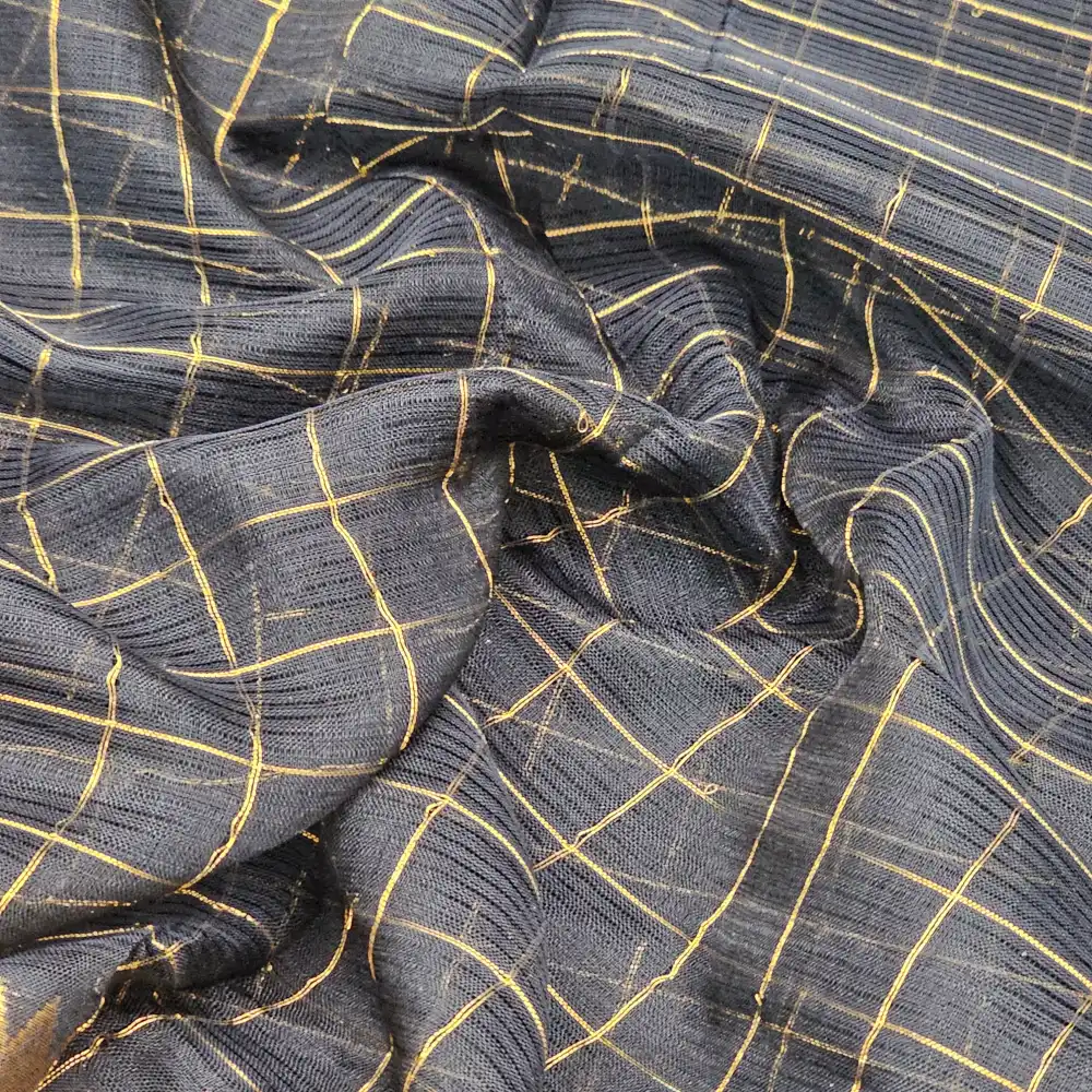 Enhance your ethnic style with this Black Mangalagiri Handloom Pure Silk Cotton Blend Checks Saree featuring a graceful 100K zari border. Expertly handwoven by skilled artisans, this saree beautifully combines the lustrous texture of silk with the soft comfort of cotton. The traditional checked pattern adds timeless charm, while the rich Gold zari border brings a touch of sophistication—perfect for festive occasions, traditional ceremonies, and cultural gatherings.