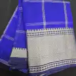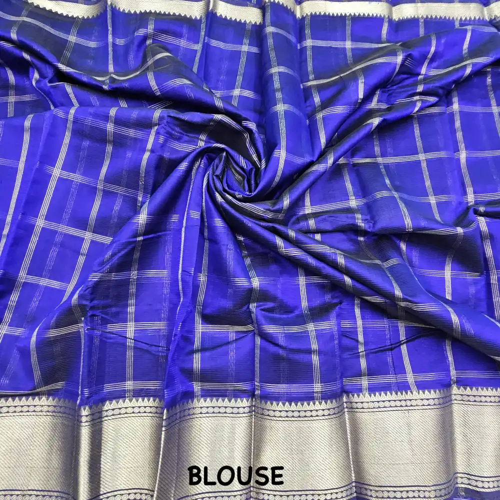 Enhance your ethnic style with this Royal Blue Mangalagiri Handloom Pure Silk Cotton Blend Checks Saree featuring a graceful 150K Silver zari border. Expertly handwoven by skilled artisans, this saree beautifully combines the lustrous texture of silk with the soft comfort of cotton. The traditional checked pattern adds timeless charm, while the rich zari border brings a touch of sophistication—perfect for festive occasions, traditional ceremonies, and cultural gatherings.