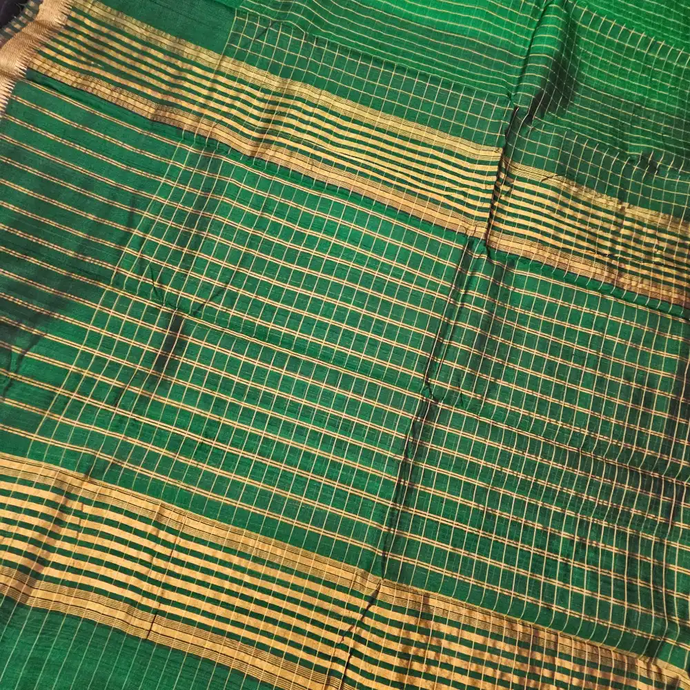 Dark Green Mangalagiri Handloom Pure Silk Cotton Zari Checks With Gap Border Saree