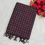 Timeless in appeal and rich in texture, this Dark Brown Mangalagiri Cotton-Pure Silk saree features classic Gold Zari checks across a smooth, breathable body. The fusion of fine cotton and pure silk gives the saree a crisp yet soft feel, with a subtle sheen that makes it perfect for both everyday sophistication and festive elegance.