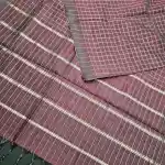Dark Brown Mangalagiri Handloom Pure Silk Cotton Blend Small Zari Checks Saree