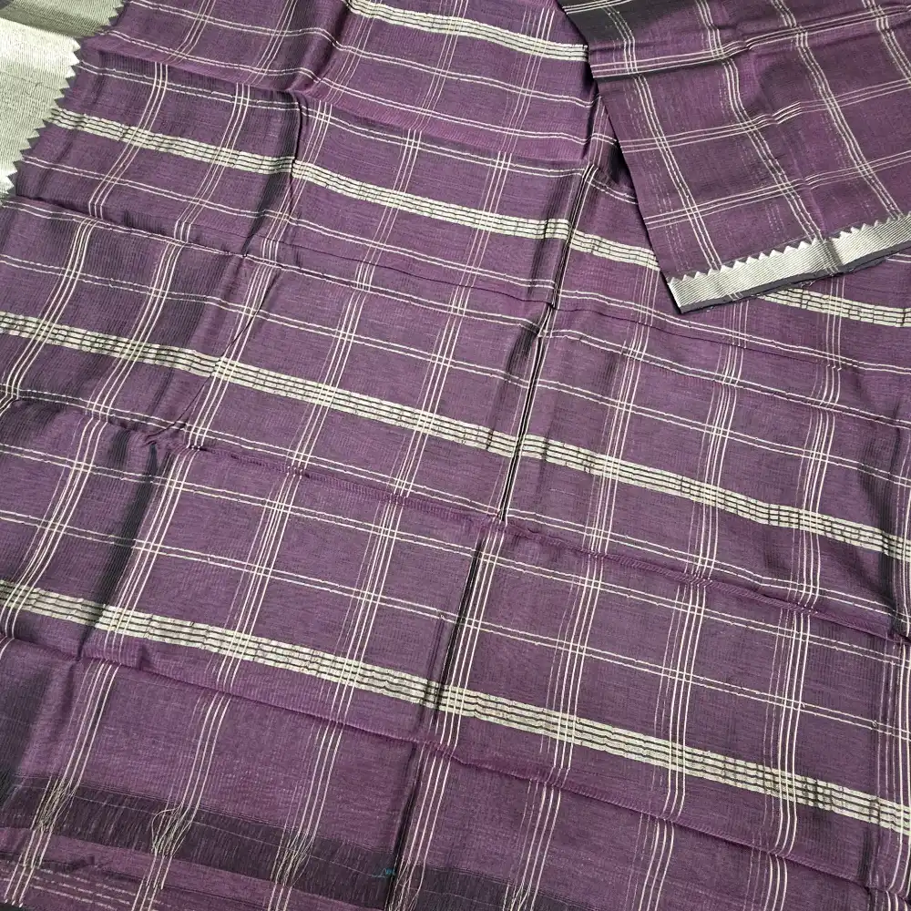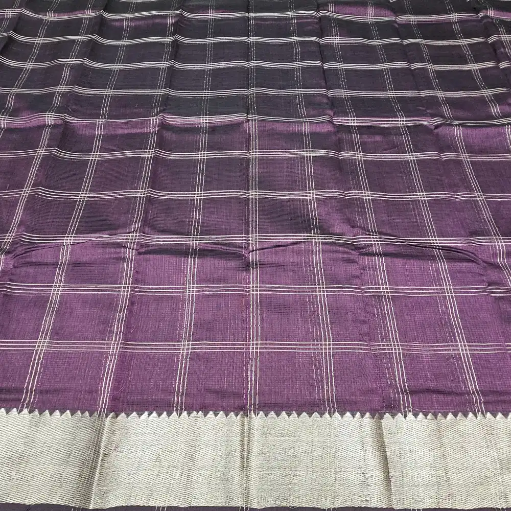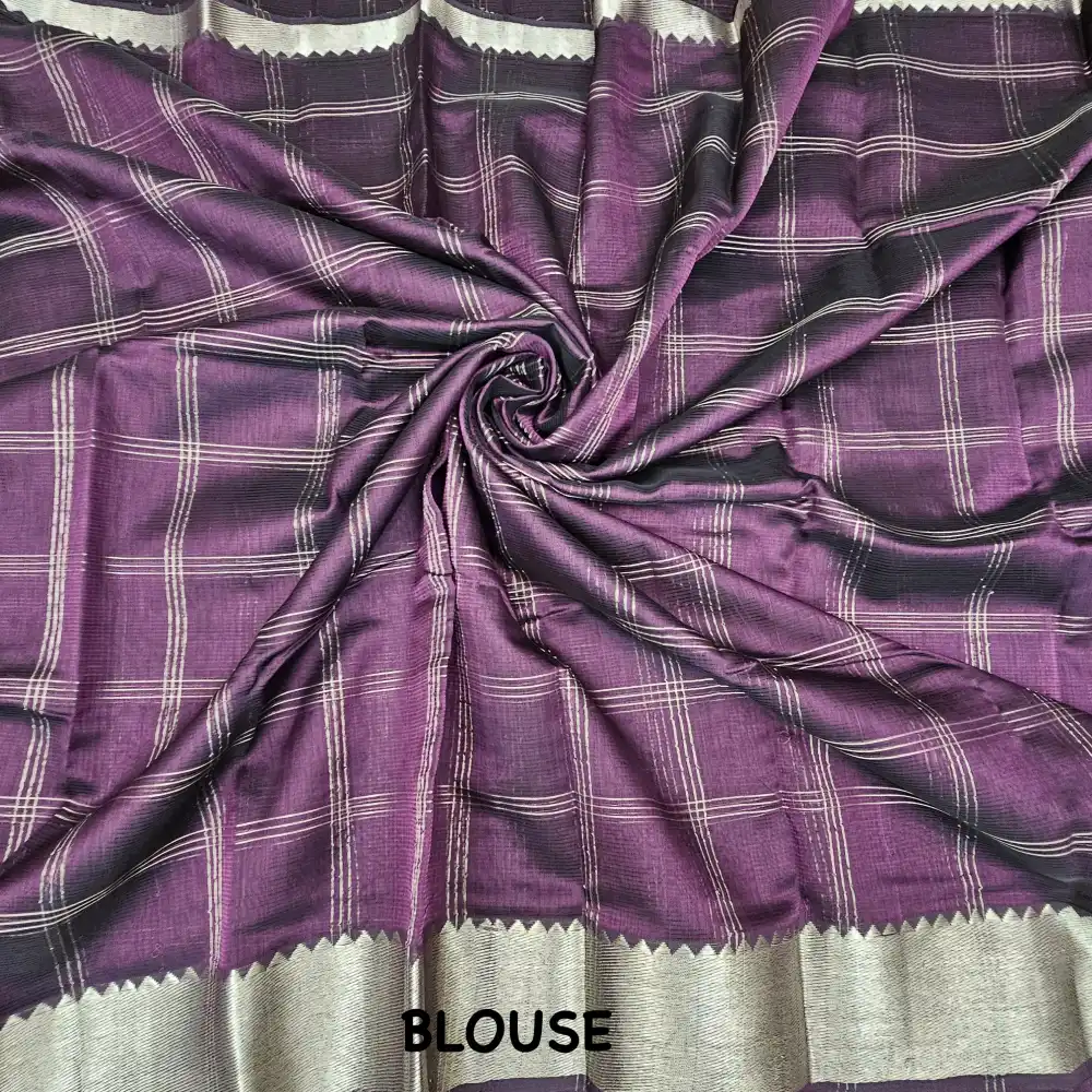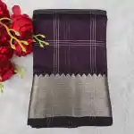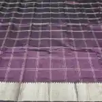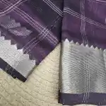 Showcase timeless elegance with this Brown Mangalagiri Handloom Silk Cotton Blend Checks Saree featuring a graceful 150K Silver zari border. Handwoven by skilled artisans, this saree blends the subtle sheen of silk with the soft comfort of cotton. The classic checked pattern gives it a traditional charm, while the rich zari border adds a luxurious touch—perfect for festive occasions, weddings, and cultural celebrations.