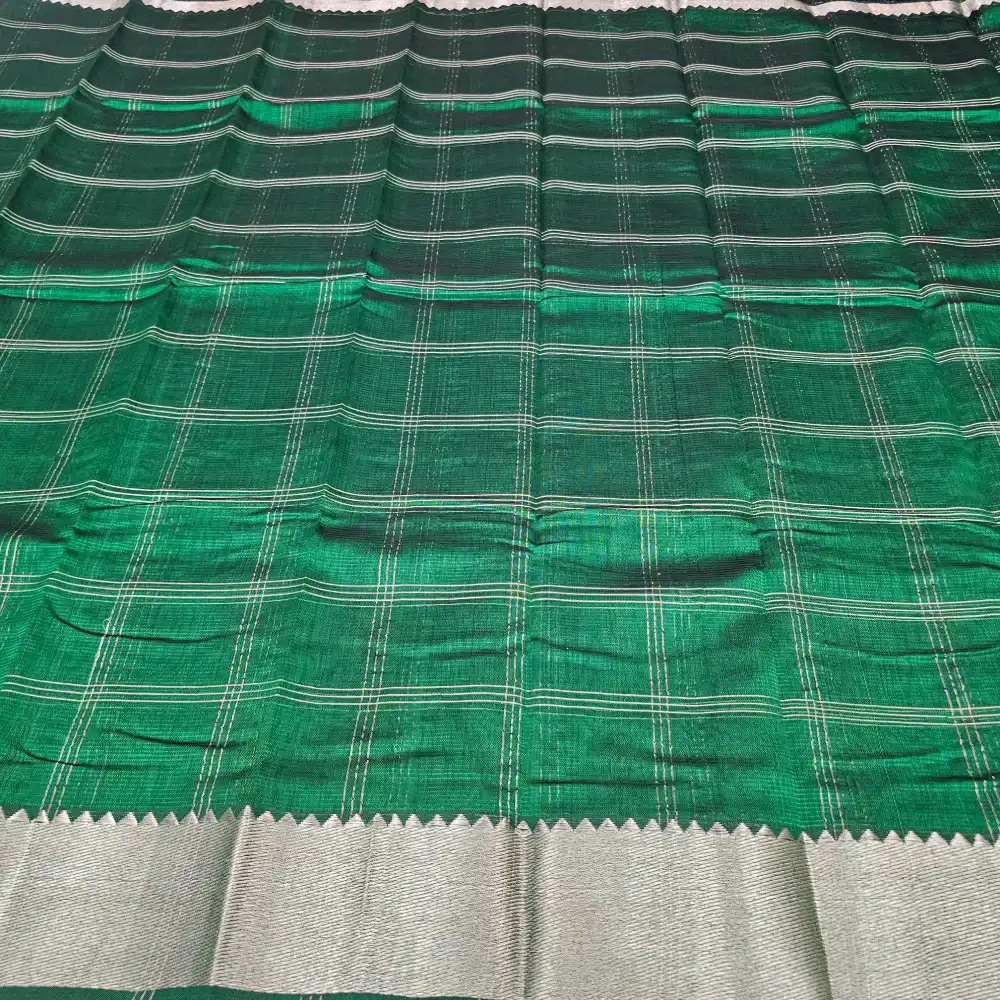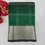 Dark Green Mangalagiri Handloom Silk Cotton Blend 150k Border Checks Saree