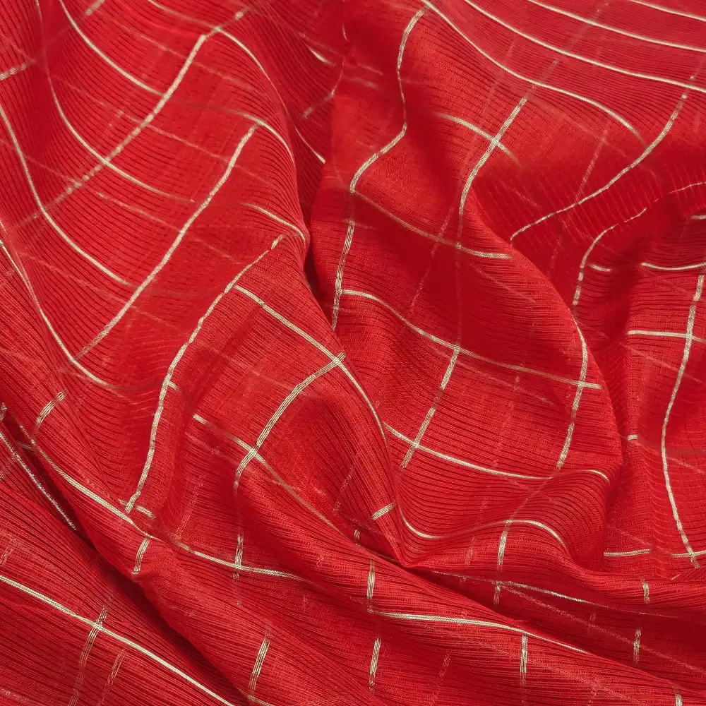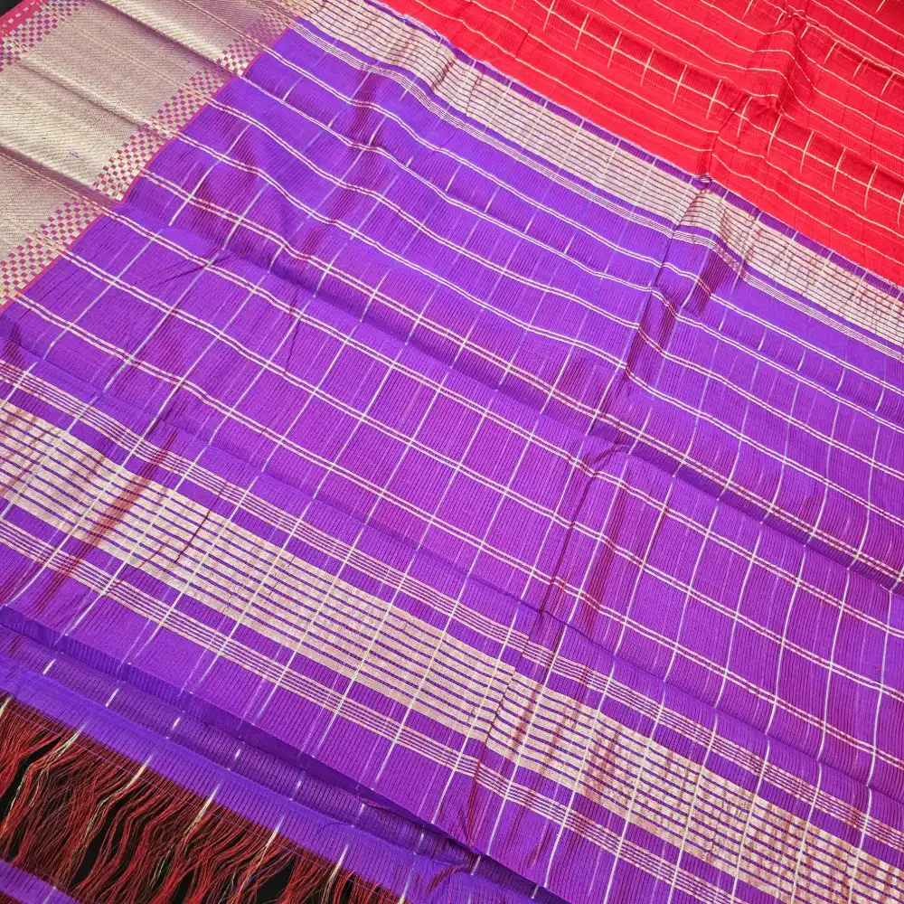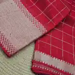 Red Mangalagiri Handloom Pure Silk Cotton Blend 300k Border Zari Checks Saree