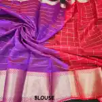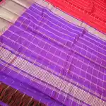 Add a touch of grandeur to your ethnic collection with this Mangalagiri Handloom Silk Cotton Blend Checks Saree featuring an exquisite 300K zari big border. Expertly woven on traditional handlooms, this saree beautifully blends the shine of silk with the breathable comfort of cotton. The elegant checked pattern gives it a classic appeal, while the rich zari big border enhances its royal charm—making it an ideal choice for festive occasions, weddings, and cultural celebrations.