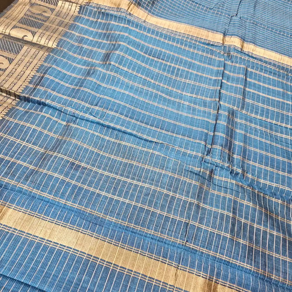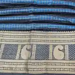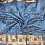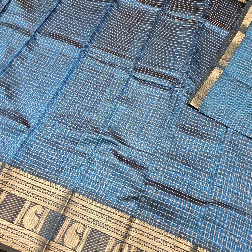 Steel Blue Mangalagiri Handloom Pure Silk Cotton Blend 300k Border Zari Checks Saree