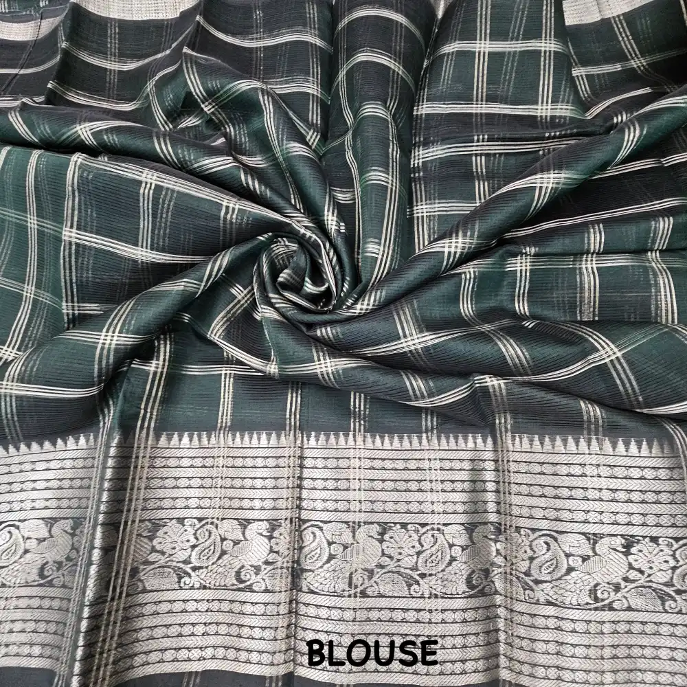 • Blouse: Dark Jungle Green Blouse Piece With Silver Zari Checks Included