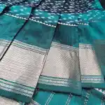 • Pallu: Blue-Green with Silver Zari Stripes