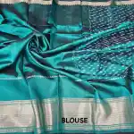 BlueGreen Mangalagiri Handloom Pure Silk Ikkat Style Saree