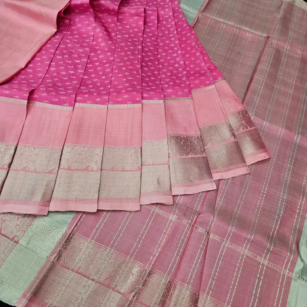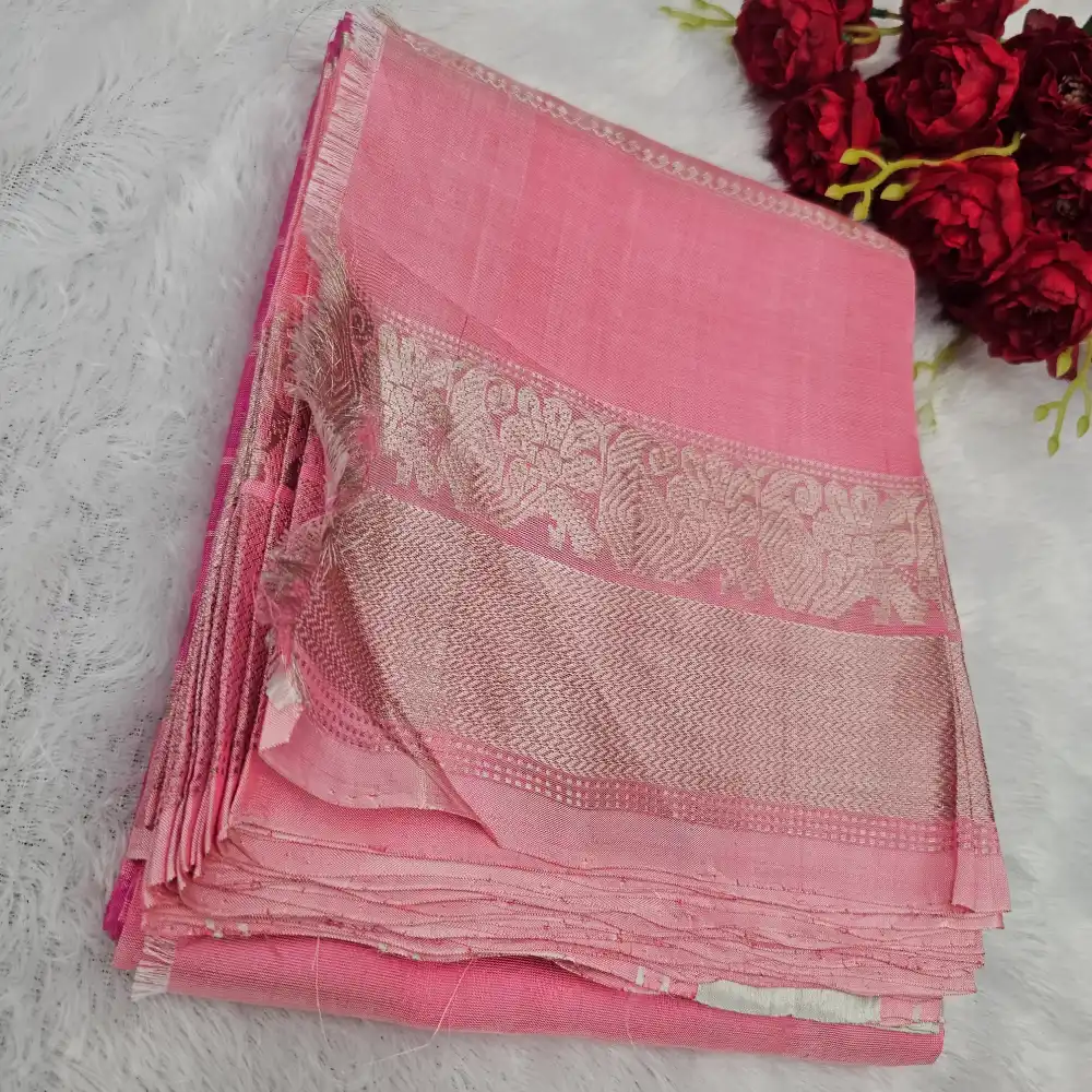 Pallu: Rose Pink with Silver Zari Stripes