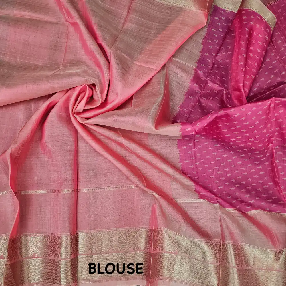 Rose Pink And Baby Pink Mangalagiri Handloom Pure Silk Ikkat Style Saree