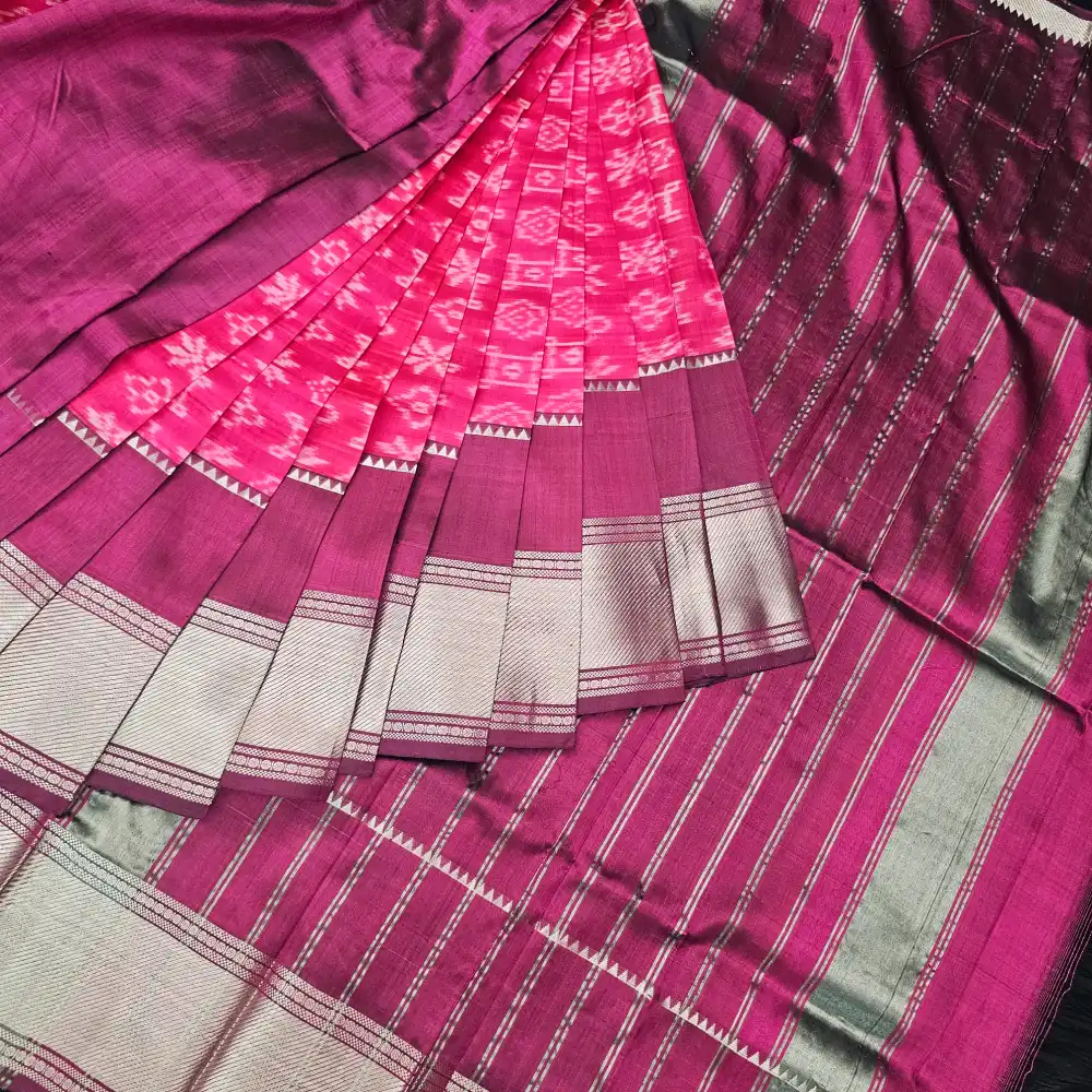 Rose Pink Mangalagiri Handloom Pure Silk Ikkat Style Saree