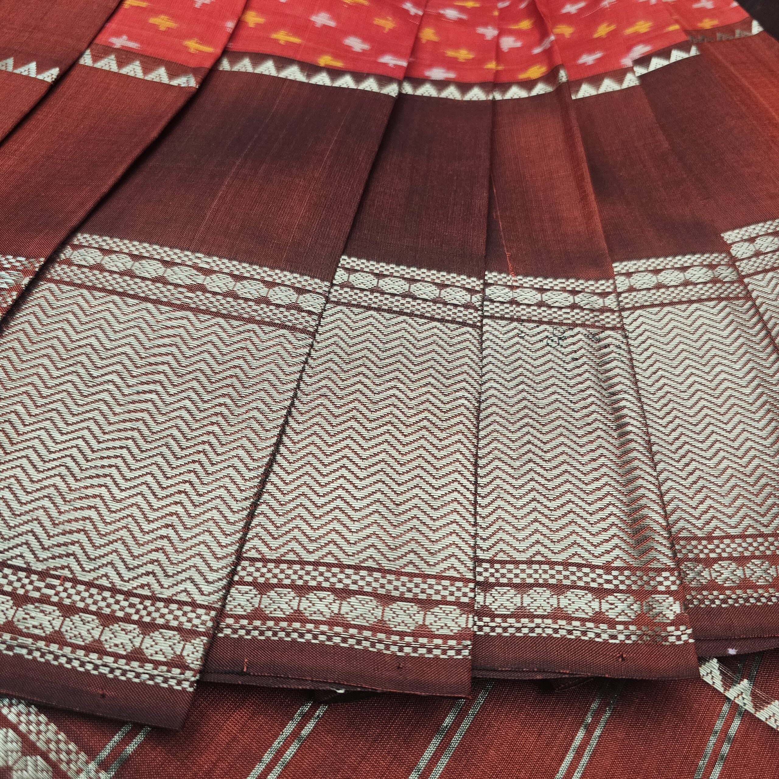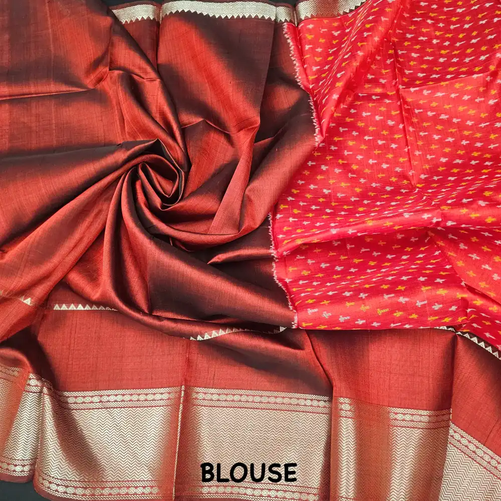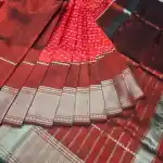 Dark Red Mangalagiri Handloom Pure Silk Ikkat Style Saree