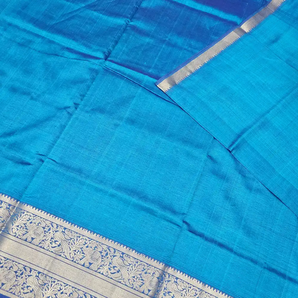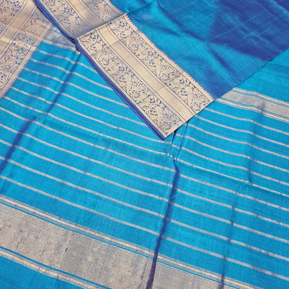 Sky-Blue Mangalagiri HandLoom Pure Silk Cotton Blend 300k Border Saree