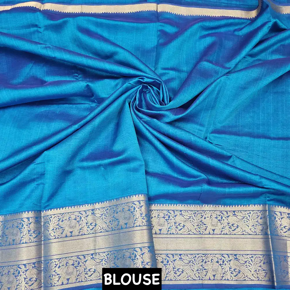 Radiate timeless elegance with this Mangalagiri Pure Silk Cotton Blend Saree, beautifully crafted with a rich 300K zari border. The luxurious blend of silk and cotton gives it a graceful drape, smooth texture, and subtle sheen. Designed with traditional craftsmanship, this saree exudes sophistication — perfect for festive occasions, weddings, and cultural celebrations.