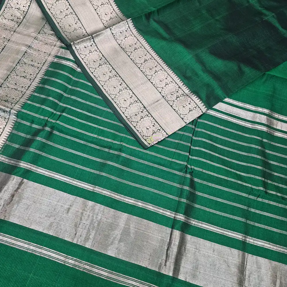 - Pallu: Dark Leaf Green Color Zari Stripes