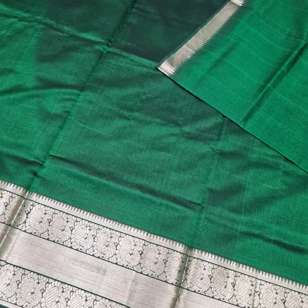 Dark Leaf Green Mangalagiri HandLoom Pure Silk Cotton Blend 300k Border Saree