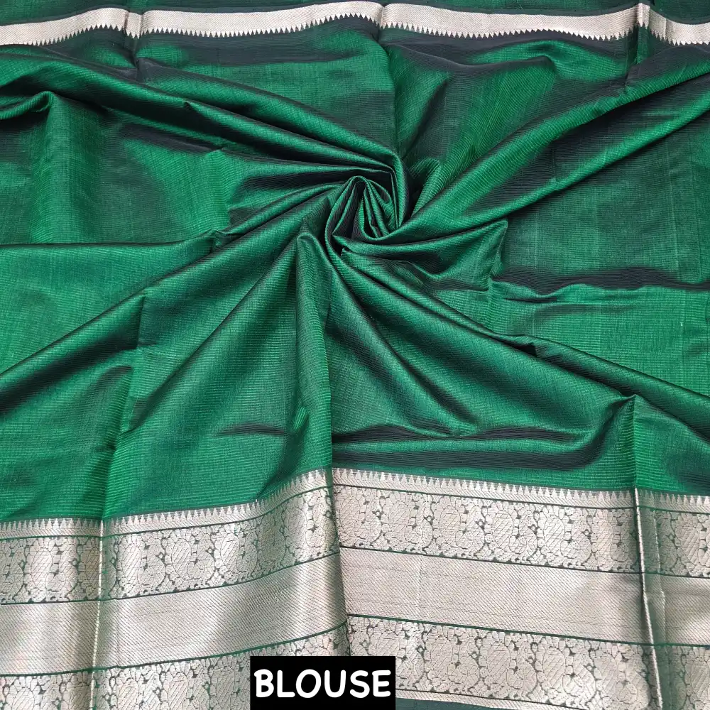Radiate timeless elegance with this Dark Leaf Green Mangalagiri HandLoom Pure Silk Cotton Blend 300k Border Saree, beautifully crafted with a rich 300K zari border. The luxurious blend of silk and cotton gives it a graceful drape, smooth texture, and subtle sheen. Designed with traditional craftsmanship, this saree exudes sophistication — perfect for festive occasions, weddings, and cultural celebrations.