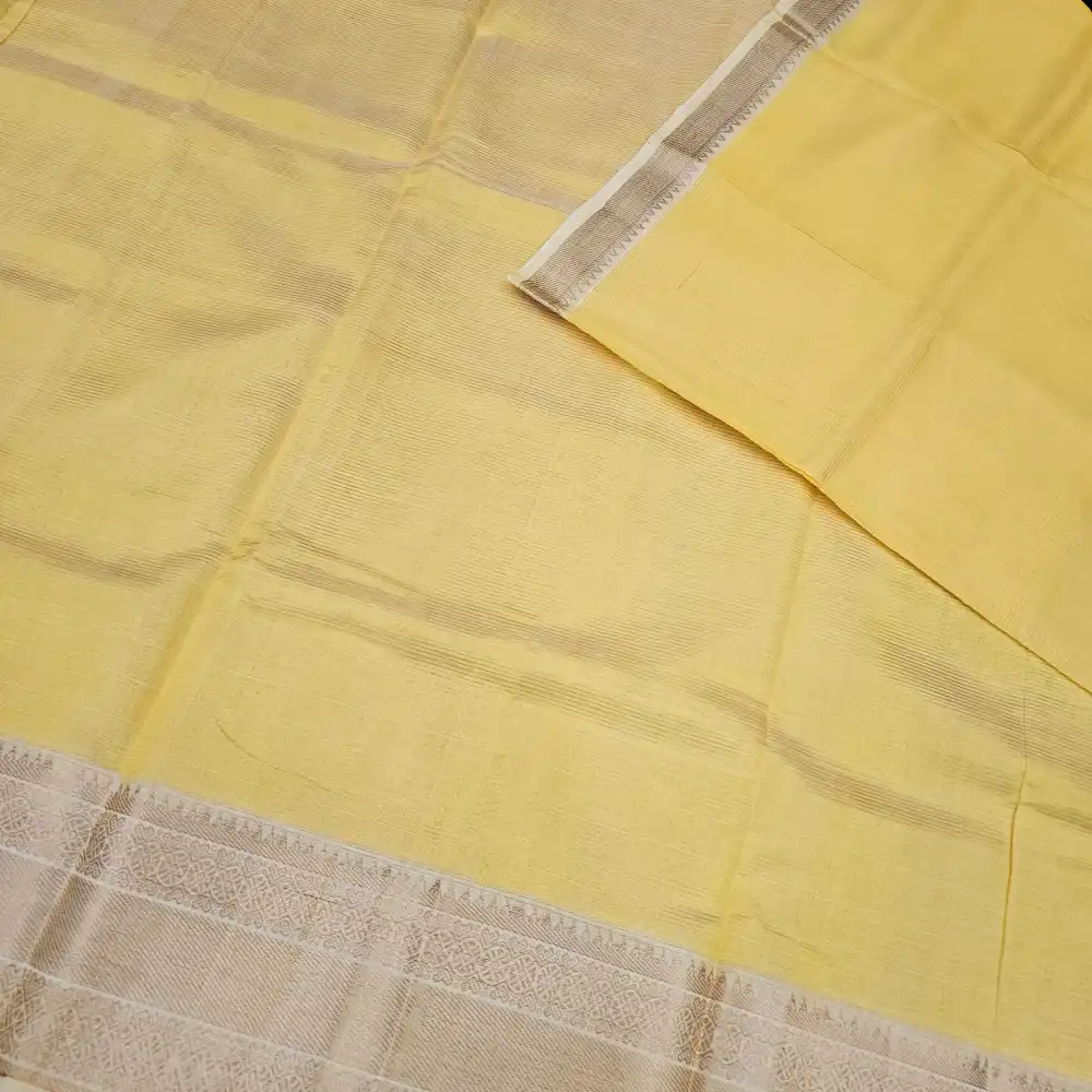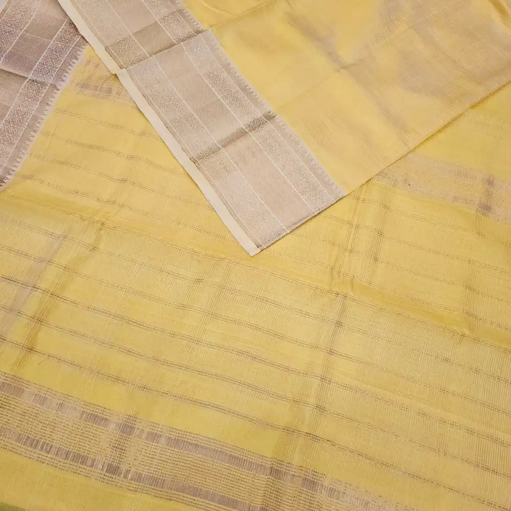 Light Yellow Mangalagiri HandLoom Pure Silk Cotton Blend 300k Border Saree