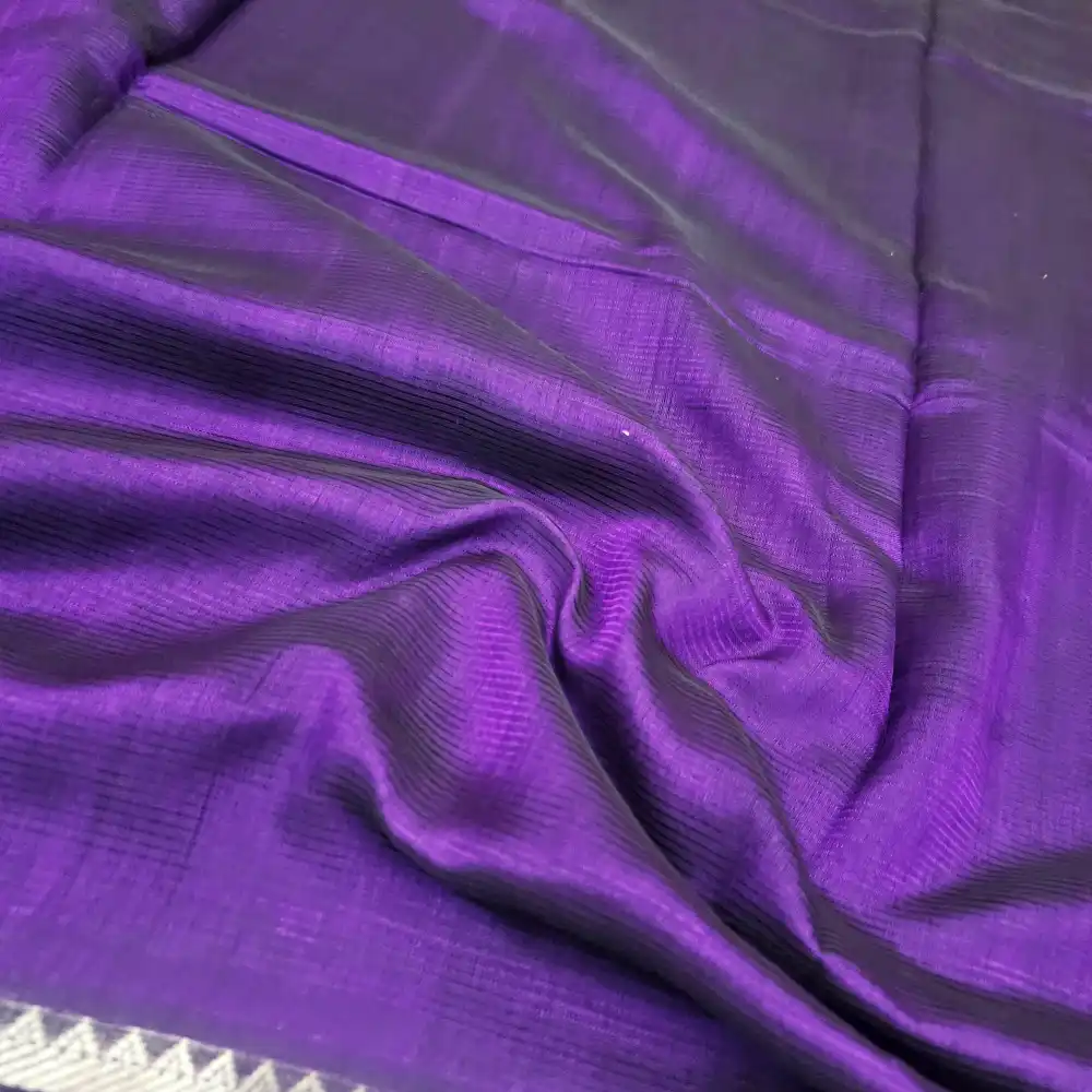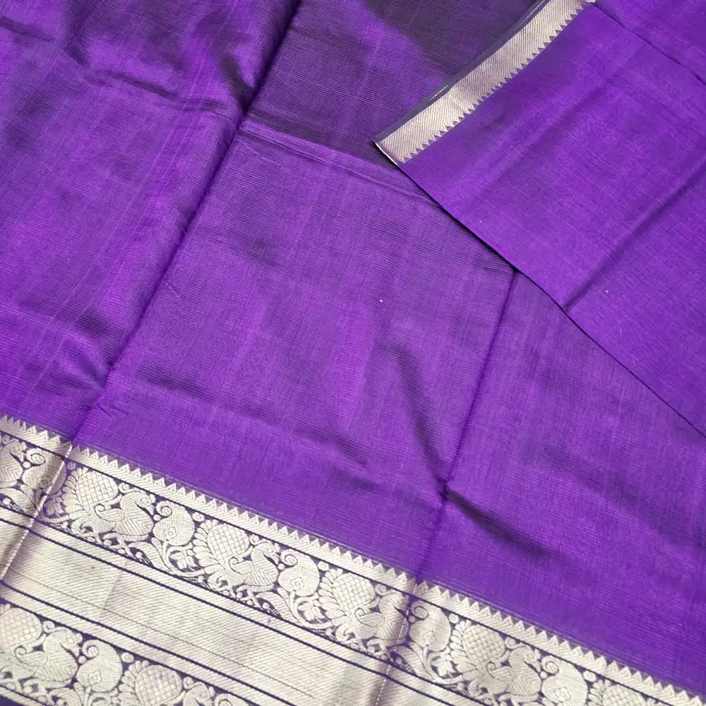 Radiate timeless elegance with this Dark Purple Mangalagiri HandLoom Pure Silk Cotton Blend 300k Border Saree, beautifully crafted with a rich 300K zari border. The luxurious blend of silk and cotton gives it a graceful drape, smooth texture, and subtle sheen. Designed with traditional craftsmanship, this saree exudes sophistication — perfect for festive occasions, weddings, and cultural celebrations.